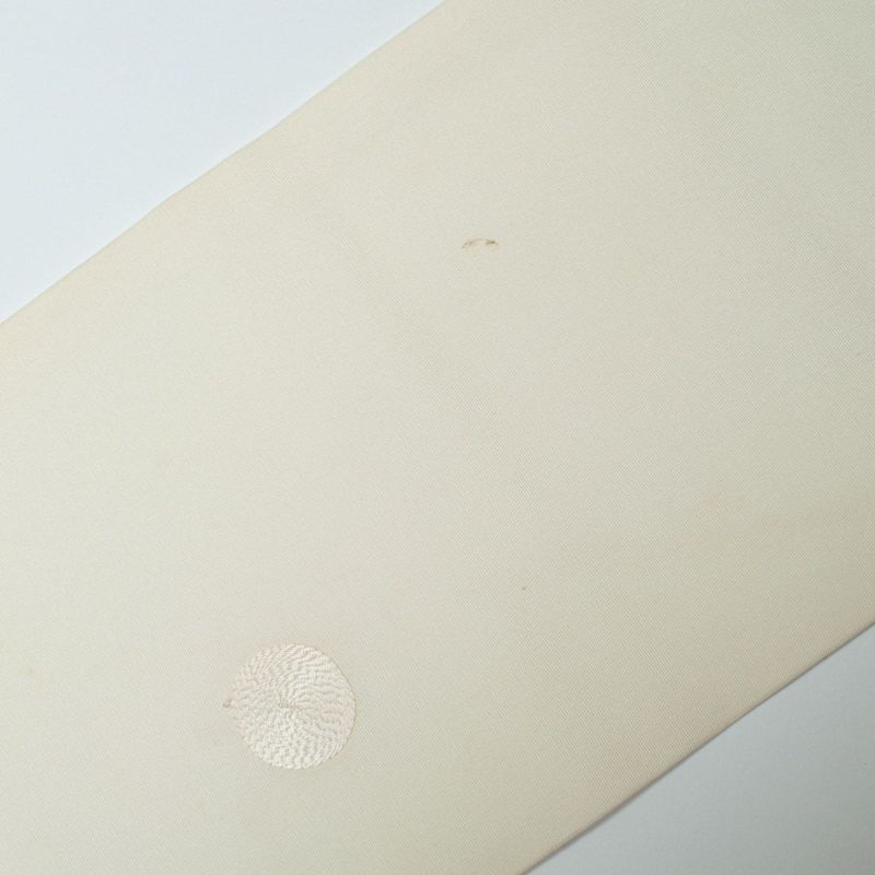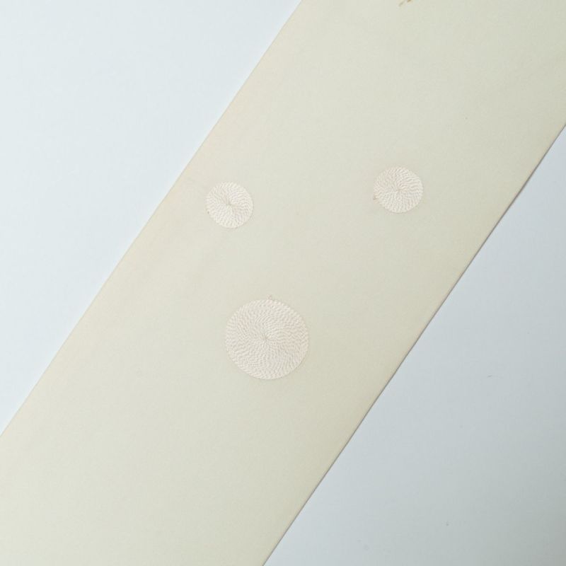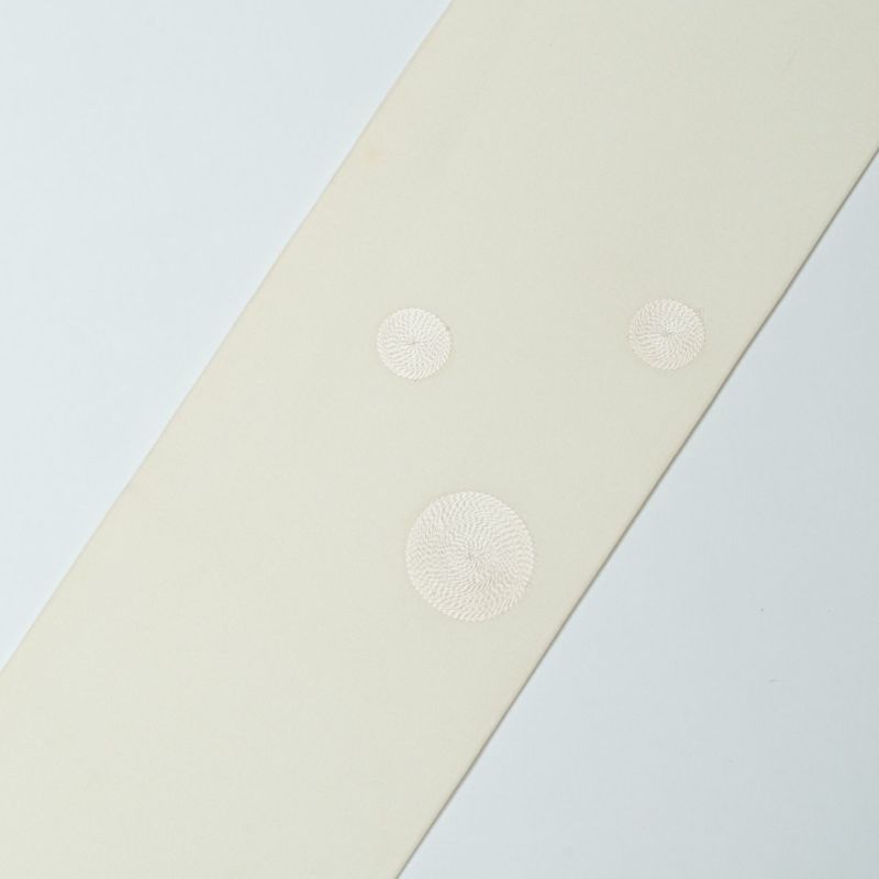 【訳あり品】名古屋帯 塩瀬 サークル刺繍 オフホワイト 正絹 九寸 です。
