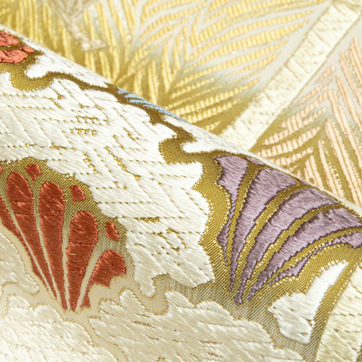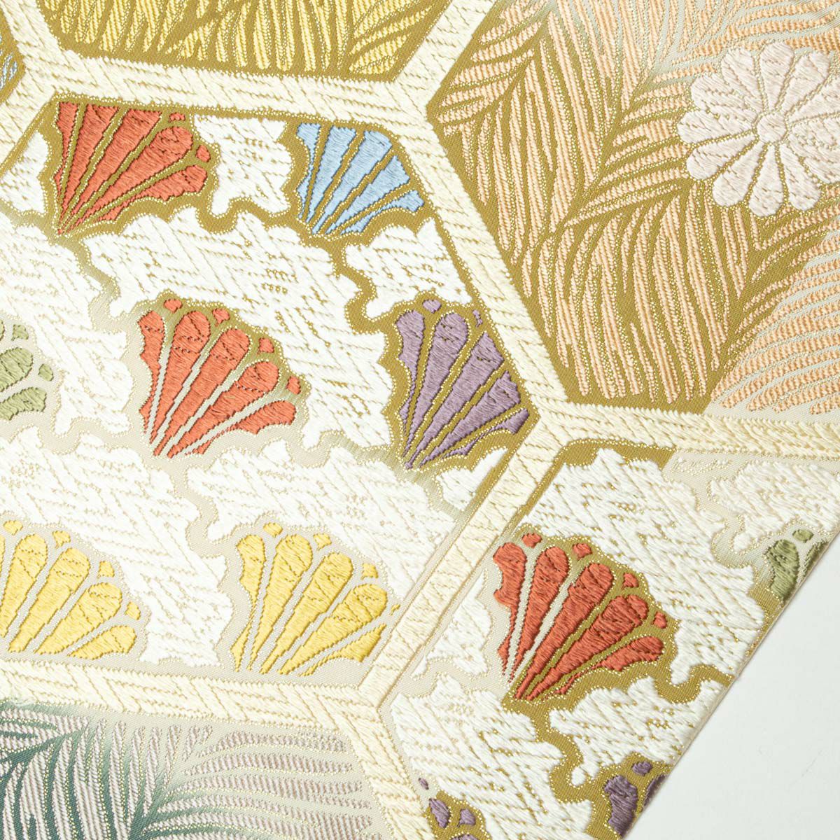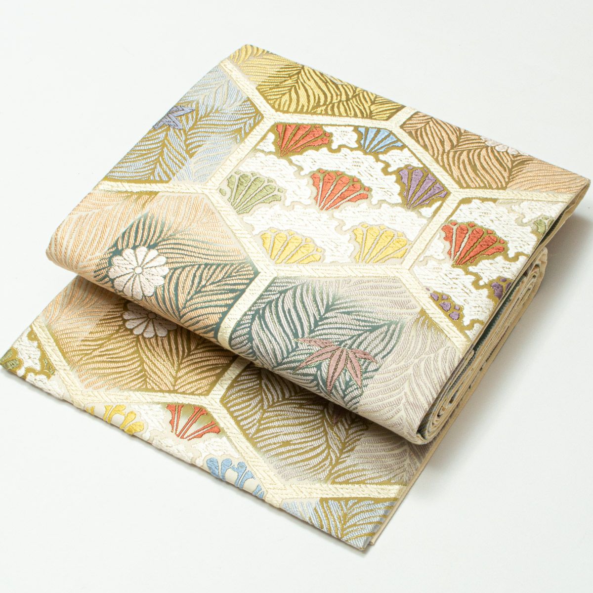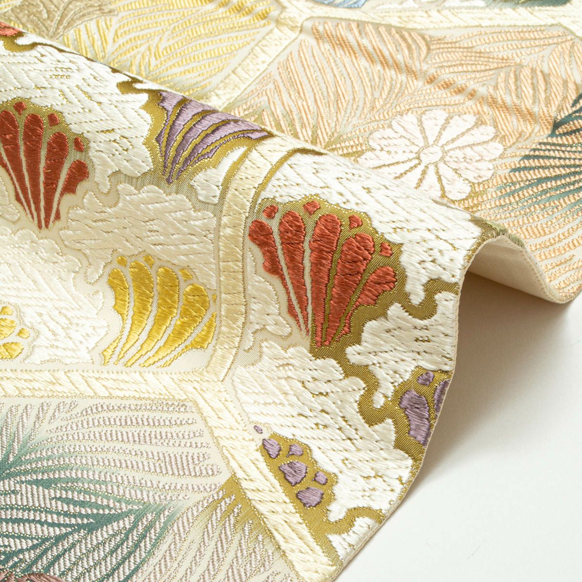 他の画像を見る ★SALE40%OFF★開き名古屋帯 絽綴れ 植物文 エ霞文 オフホワイト 金糸入り 盛夏用 正絹 八寸 SALE 再マークダウン 定価 ¥ 13,200 のところ 当店特別価格 ¥ 7,920 税込 カートに入れる お気に入りに登録する
