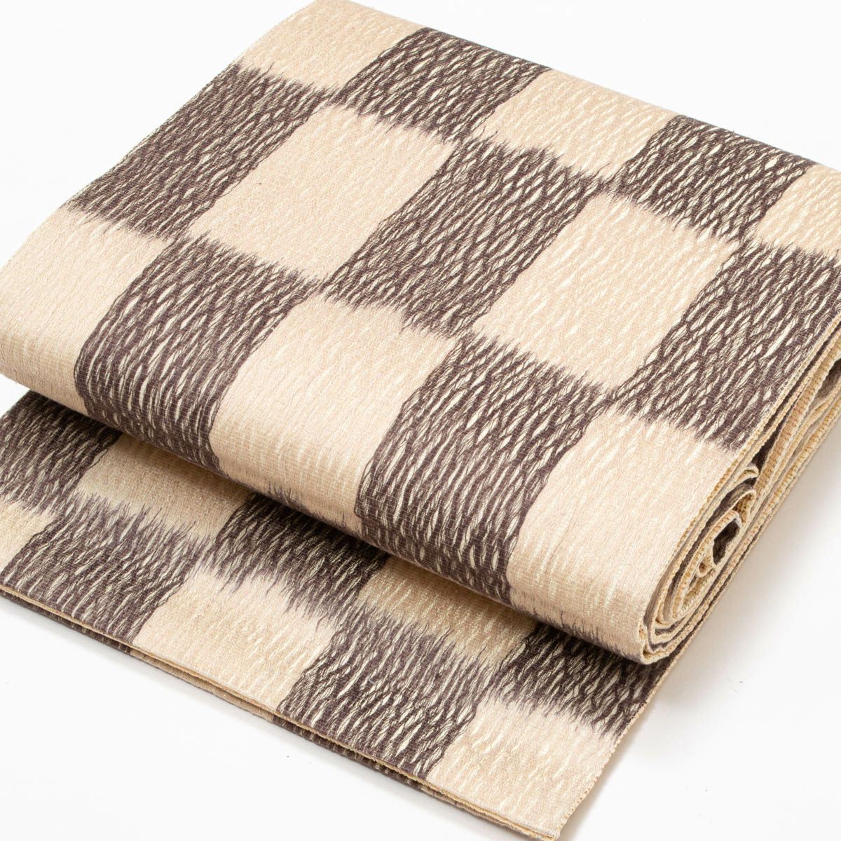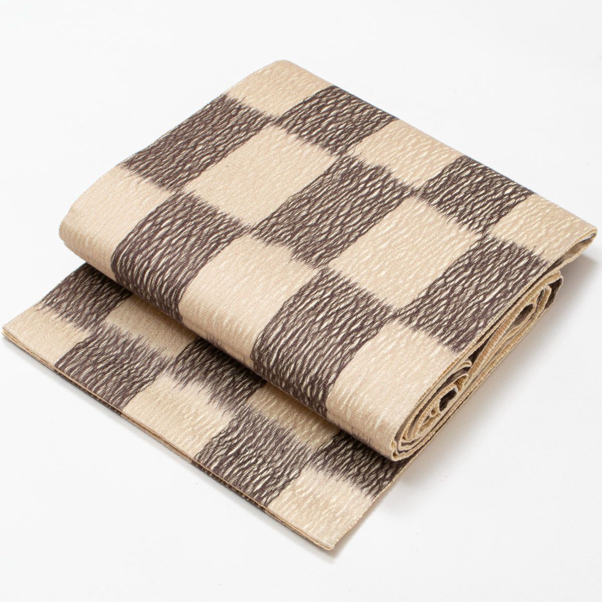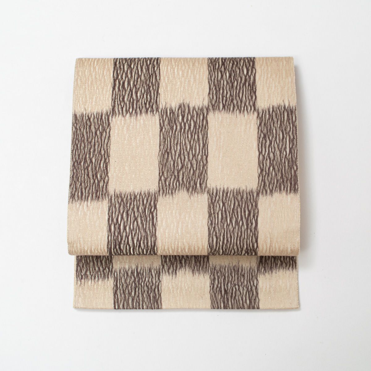 他の画像を見る ★SALE40%OFF★【美品】洒落袋帯 櫛織り 市松石畳 砂色 黒茶 リバーシブル 透かし織 ラメ通し 鳥の子色 無地 正絹 SALE 再マークダウン 定価 ¥ 26,400 のところ 当店特別価格 ¥ 15,840 税込 カートに入れる お気に入りに登録する