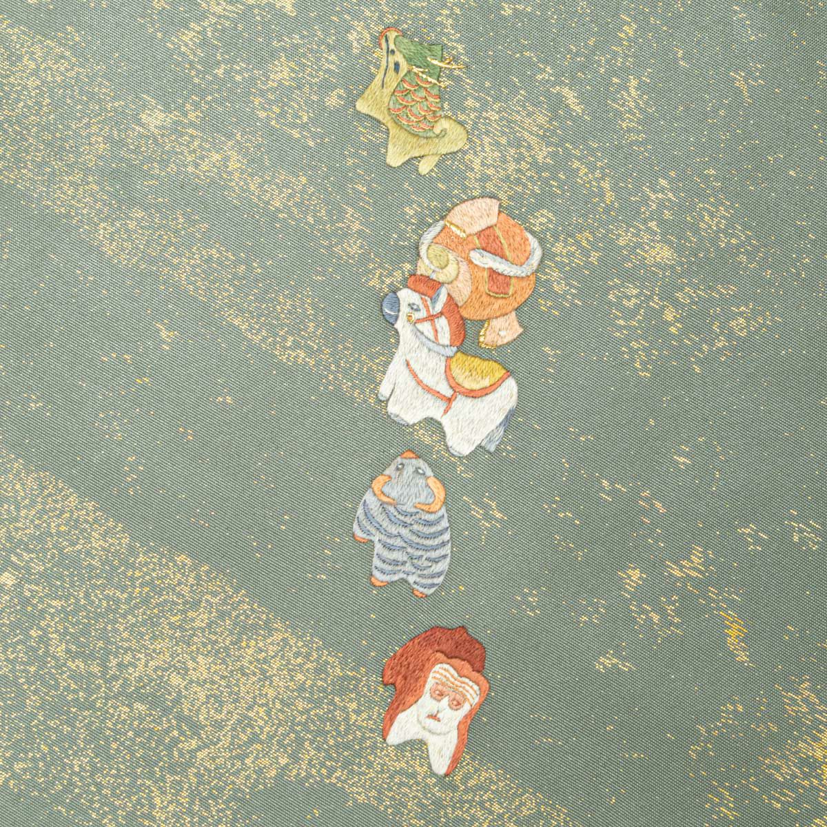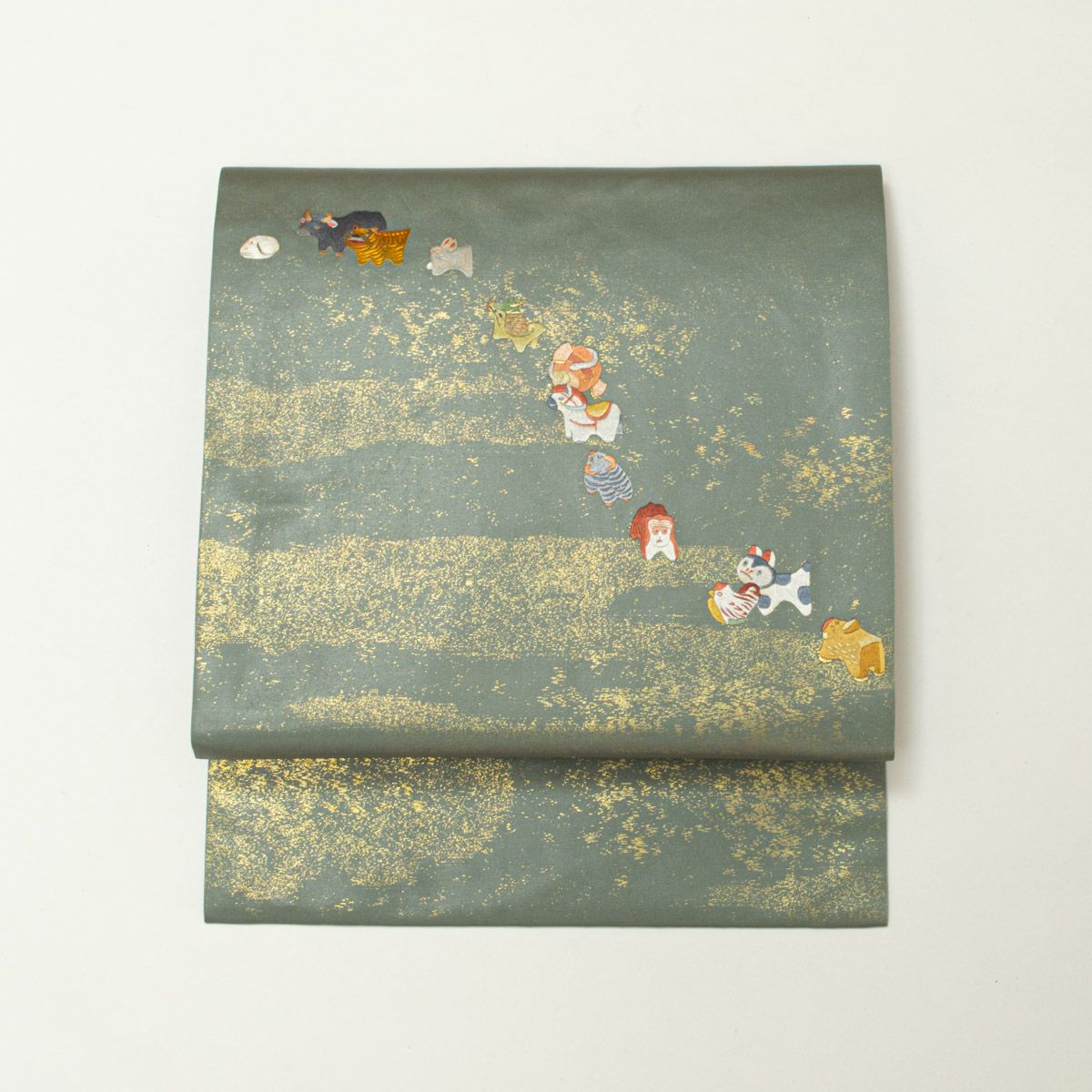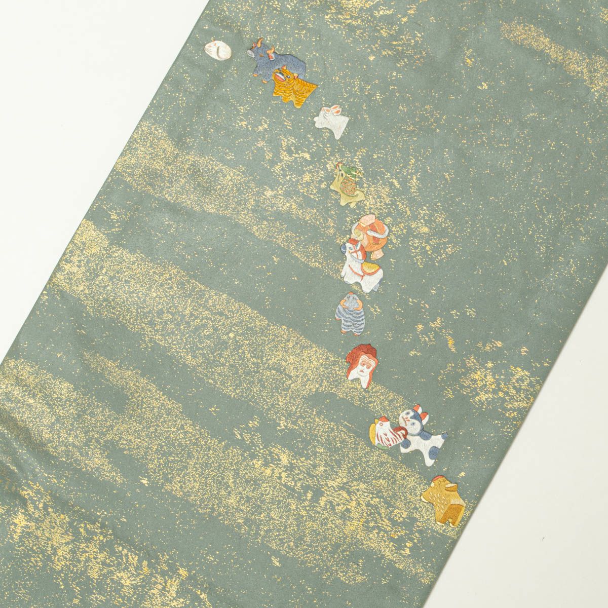 他の画像を見る ★SALE40%OFF★【美品】名古屋帯 本漆箔 刺繍 干支並びの図 水浅葱 西陣織 正絹 九寸 SALE 再マークダウン 定価 ¥ 22,000 のところ 当店特別価格 ¥ 13,200 税込 SOLD OUT 詳細を見る お気に入りに登録する