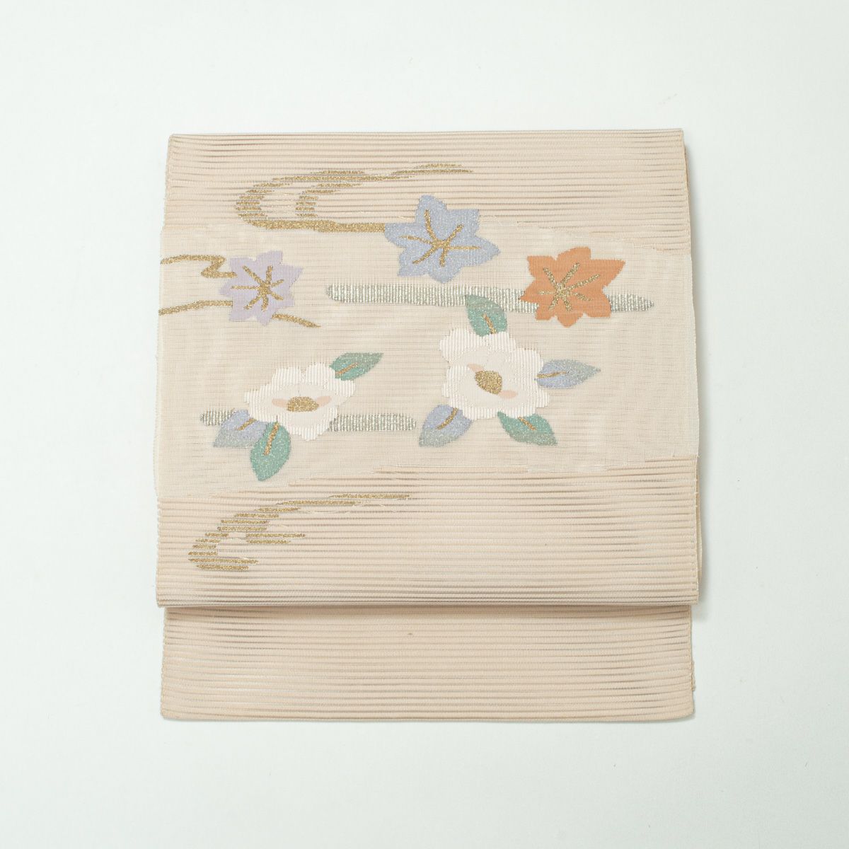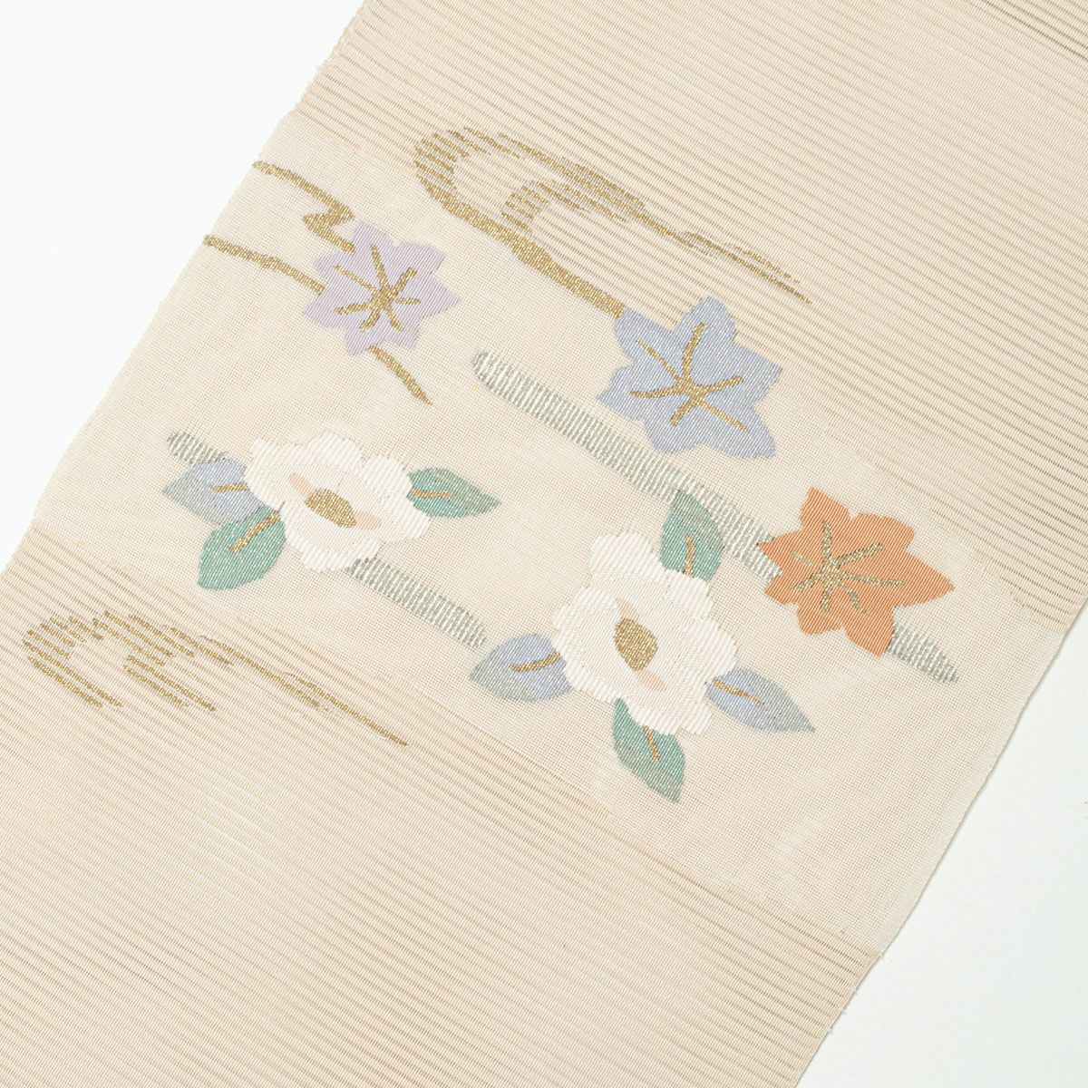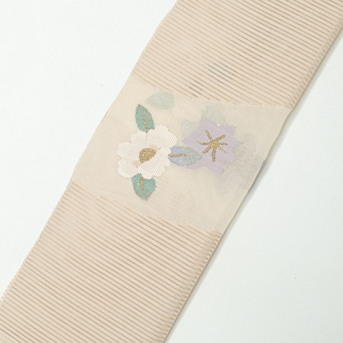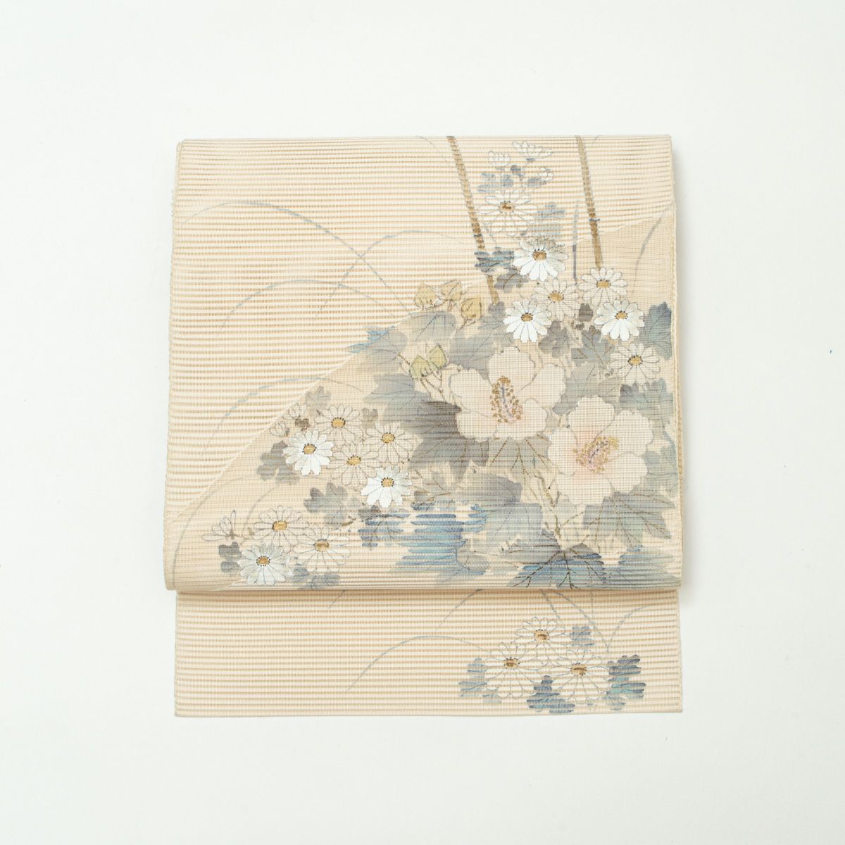 他の画像を見る ★SALE40%OFF★開き名古屋帯 絽 手描き 芙蓉と菊 ライトベージュ 単衣・盛夏用 正絹 八寸 SALE 再マークダウン 定価 ¥ 16,500 のところ 当店特別価格 ¥ 9,900 税込 カートに入れる お気に入りに登録する