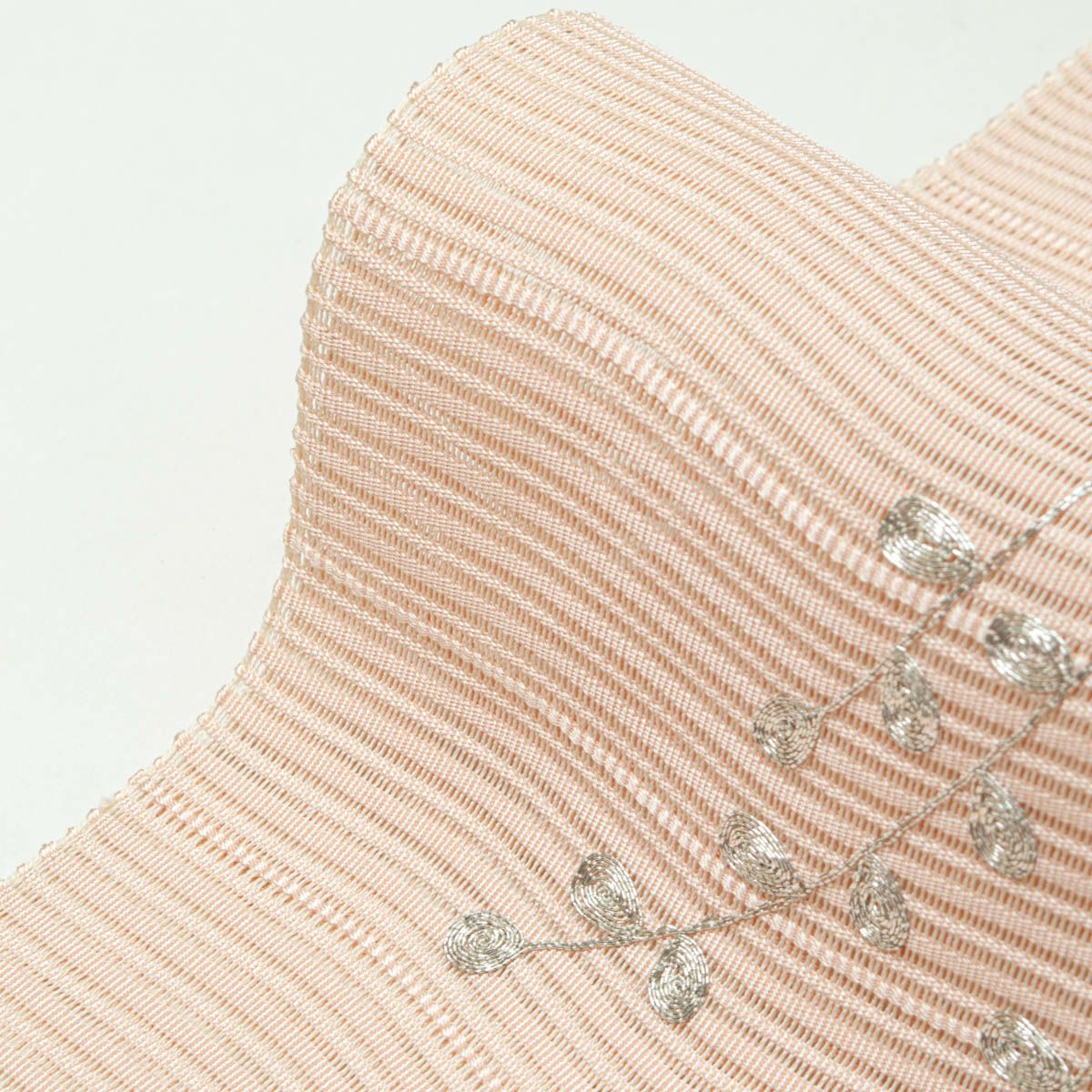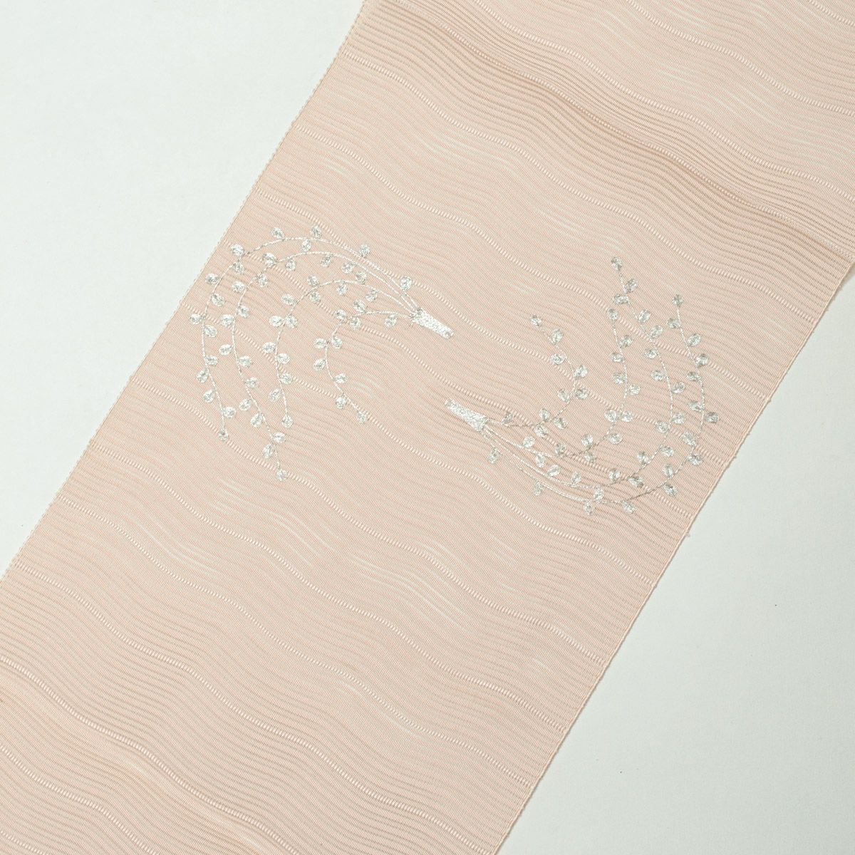 他の画像を見る ★SALE40%OFF★名古屋帯 絽綴れ 波筬織 刺繍 植物文様 モダン 薄桜 白 銀糸 盛夏用 正絹 八寸 SALE 再マークダウン 定価 ¥ 24,200 のところ 当店特別価格 ¥ 14,520 税込 カートに入れる お気に入りに登録する