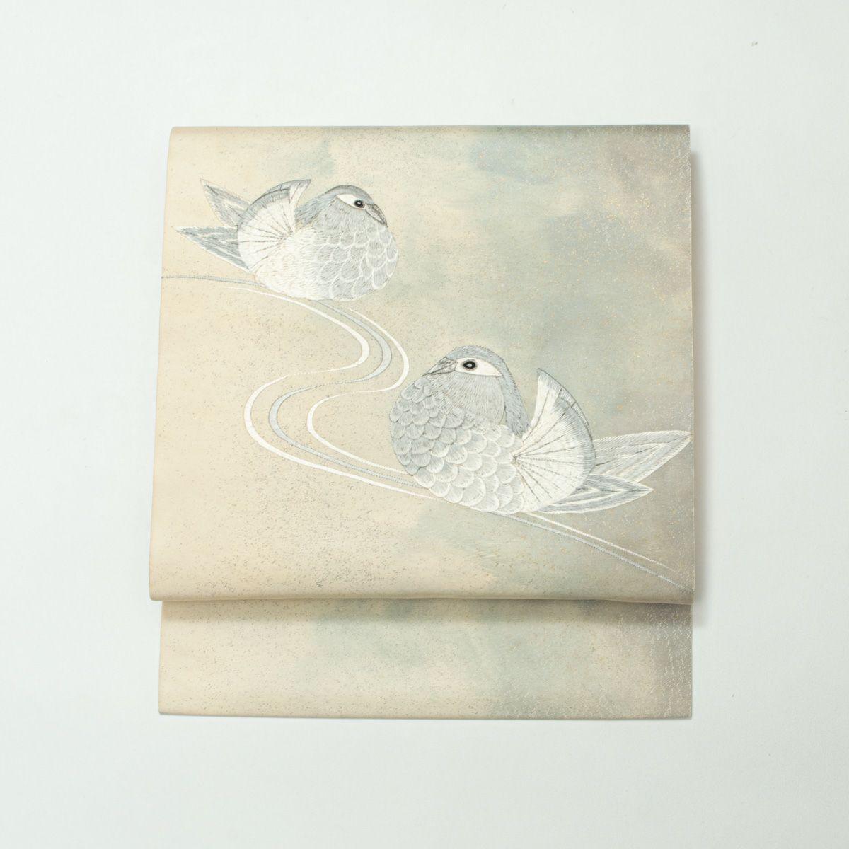 他の画像を見る ★SALE20%OFF★【訳あり品】名古屋帯 引箔 刺繍 鴛鴦の図 オフホワイト 西陣織 正絹 九寸 SALE 定価 ¥ 6,600 のところ 当店特別価格 ¥ 5,280 税込 SOLD OUT 詳細を見る お気に入りに登録する