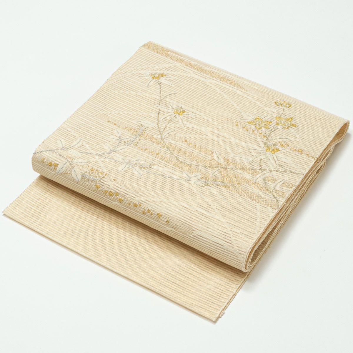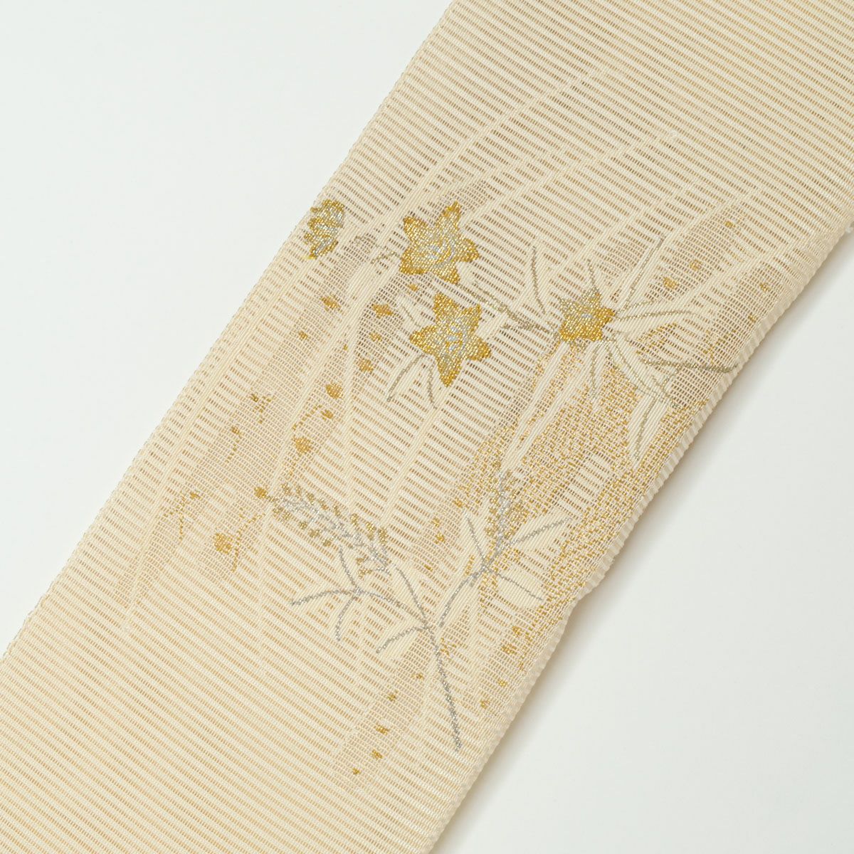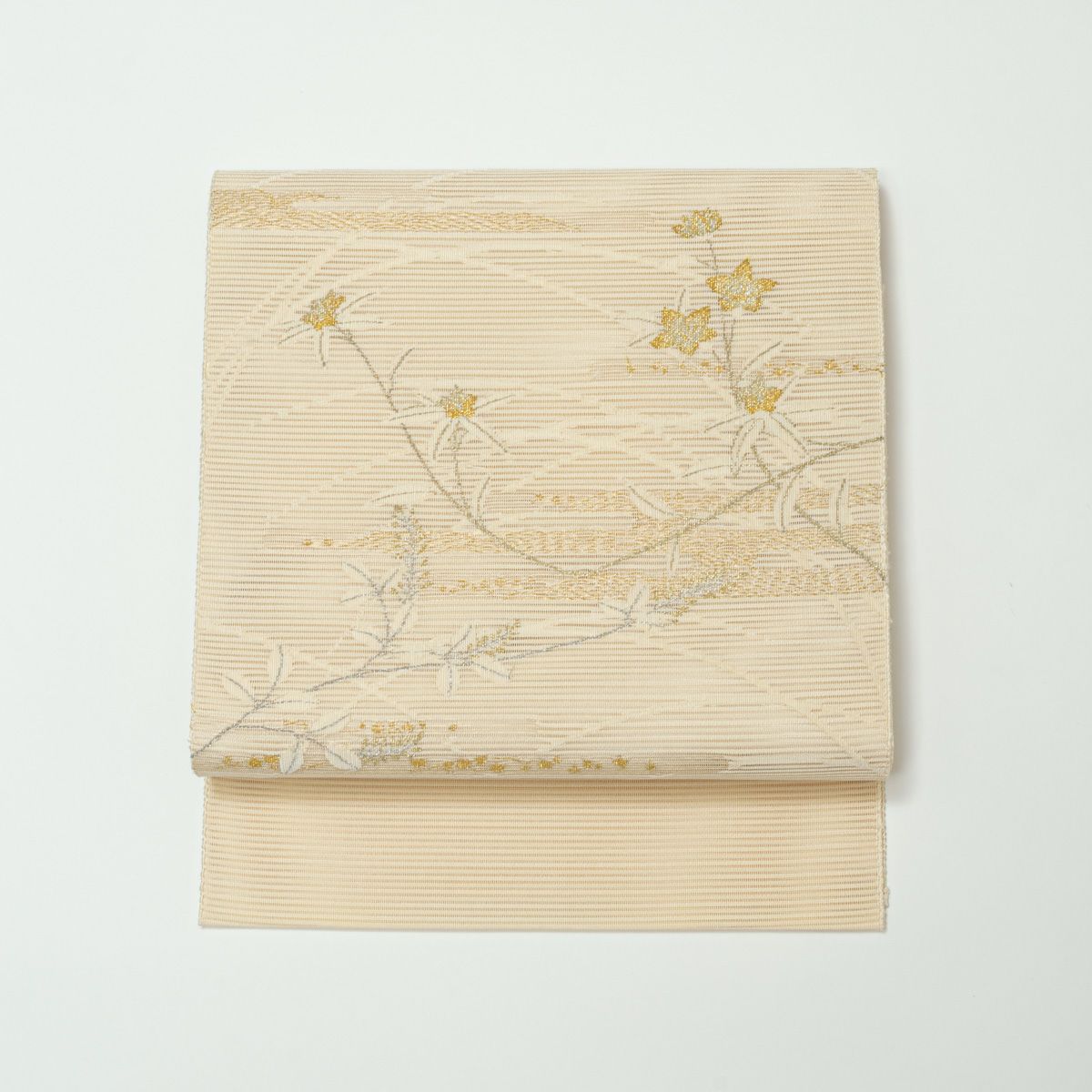 他の画像を見る ★SALE40%OFF★名古屋帯 絽綴れ 植物 流水文 オフホワイト 金銀糸入り 正絹 八寸 SALE 再マークダウン 定価 ¥ 13,200 のところ 当店特別価格 ¥ 7,920 税込 カートに入れる お気に入りに登録する