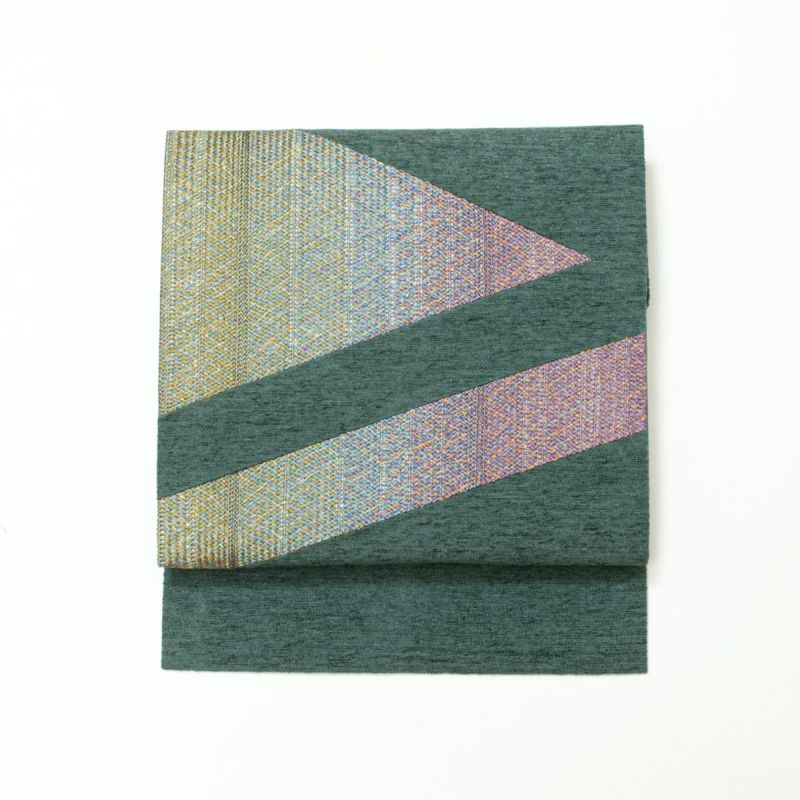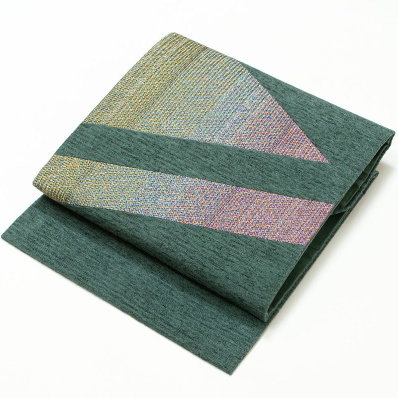 モダンな幾何学文様が印象的な、切り嵌めデザインの名古屋帯です。