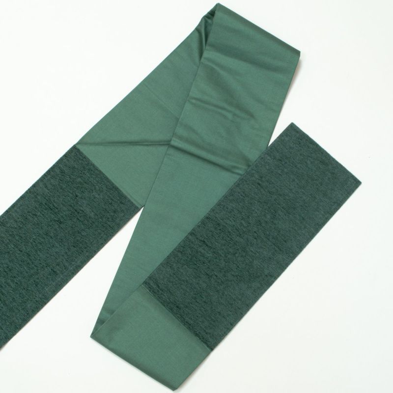 多色の糸が複雑に絡み合った組み織りが、見る角度によってきらめきを放ち、帯姿に豊かな表情を与えます。