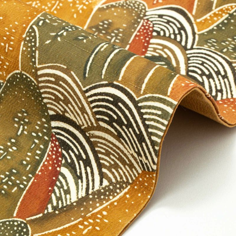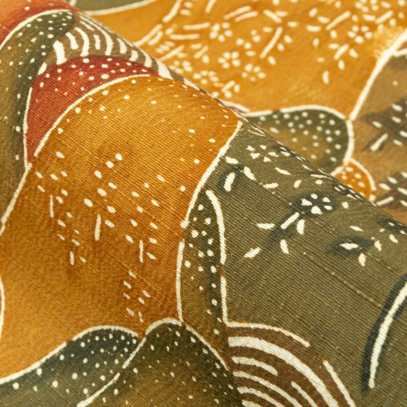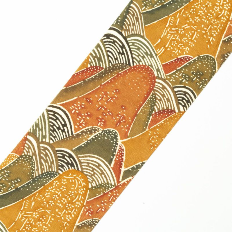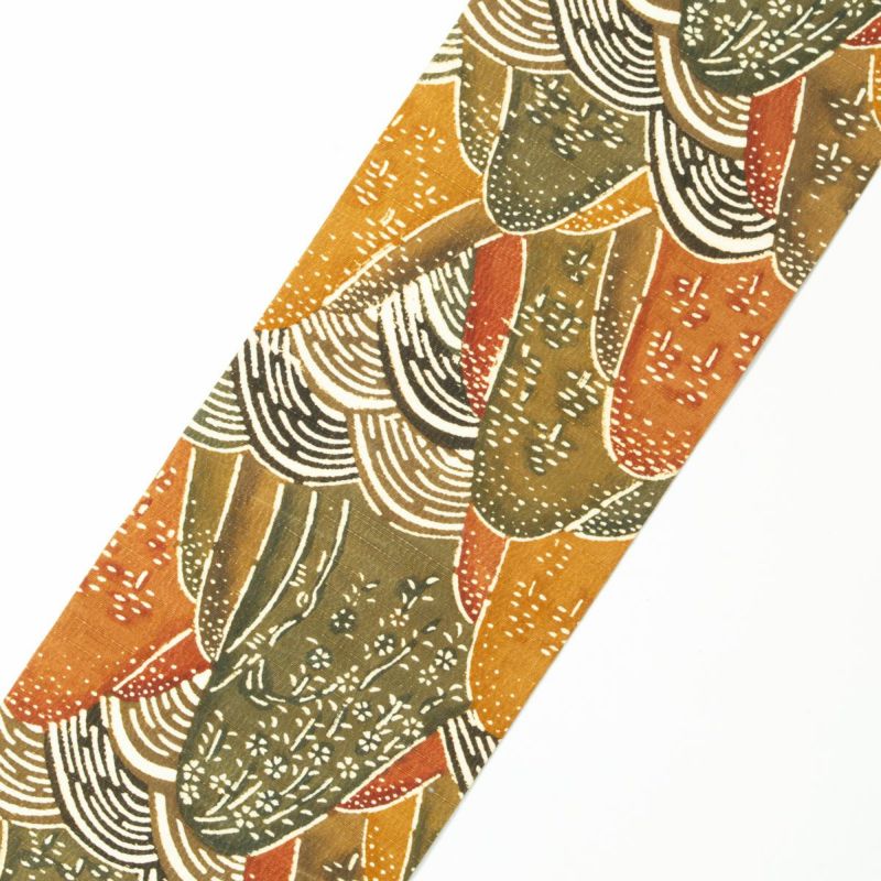 黄橡・赤茶・深緑など、趣のあるブラウン系の色調でまとめられており、しっとりとした落ち着きの中に華やかさを感じさせる一本です。