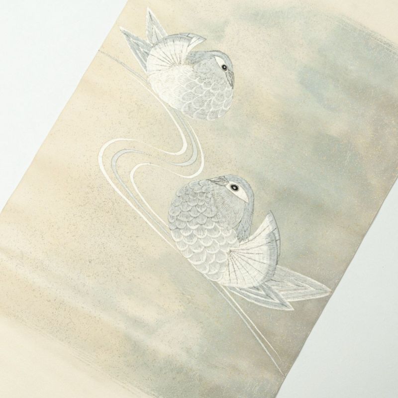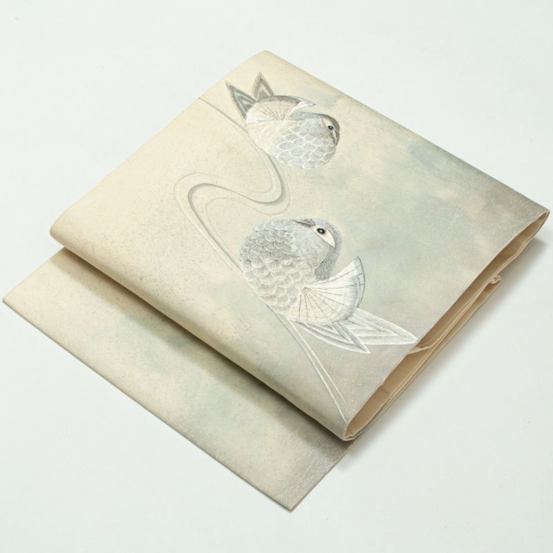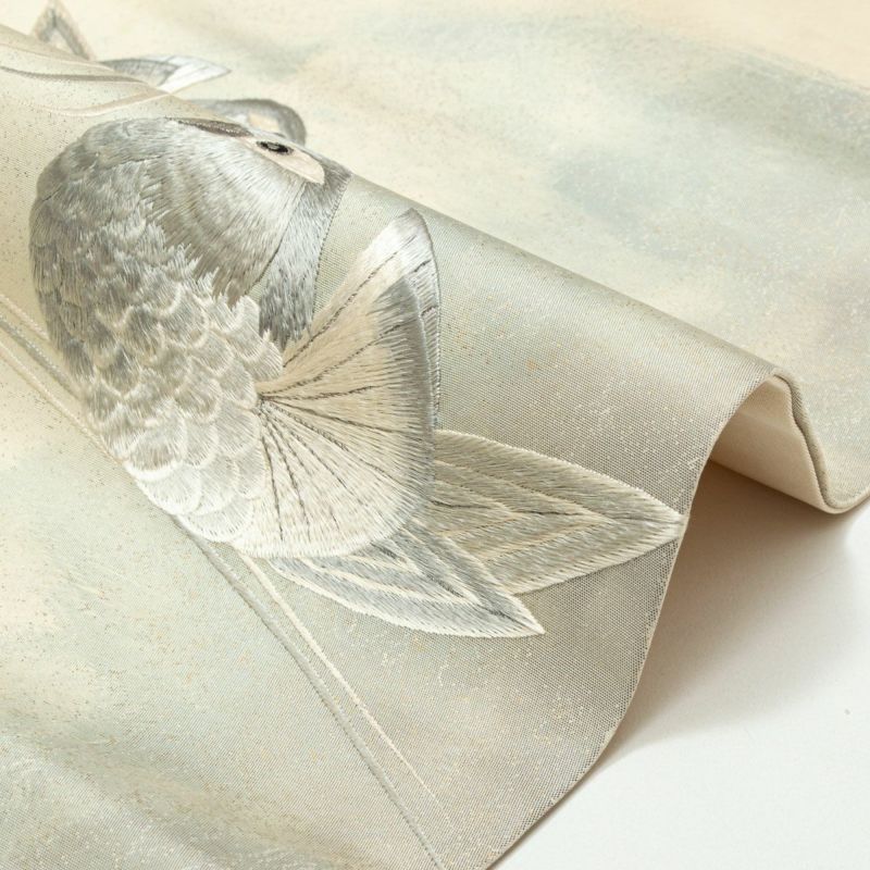 柔らかなオフホワイトに、わずかに銀糸の煌めきが差し込む引箔地が上品な華やぎを添えます。