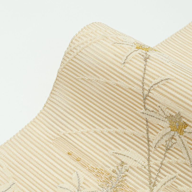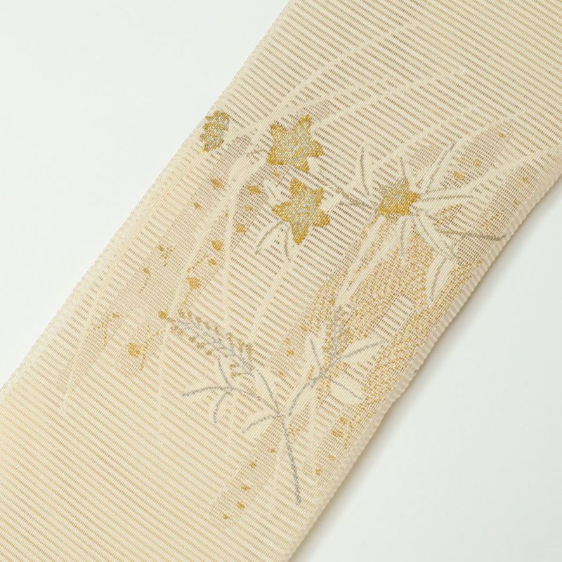 ところどころに織り込まれた金糸が光を受けてほのかに輝き、上品な華やかさを添えています。
