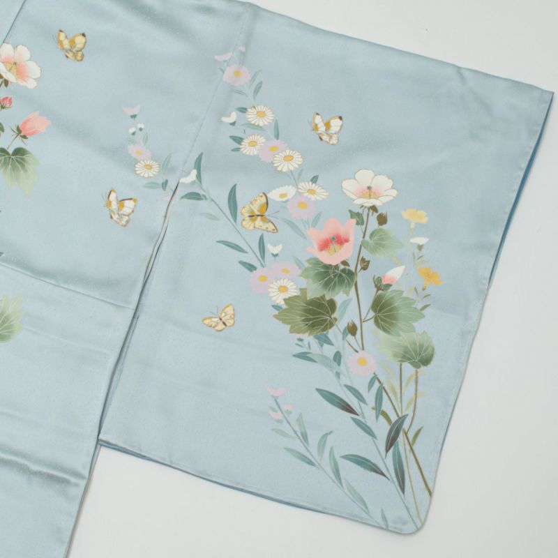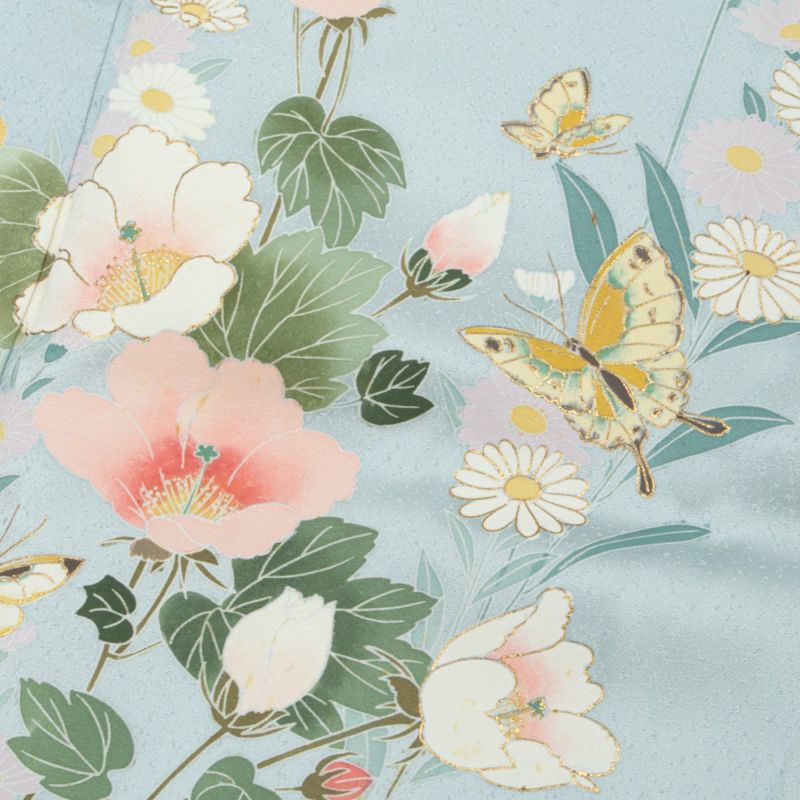 柄の中には蝶が舞う様子も繊細に表現され、季節の移ろいを感じさせる上品なデザインです。