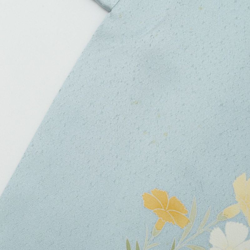 訪問着 友禅 四季花 梨地 ライトブルー 正絹 袷 訳あり品です。