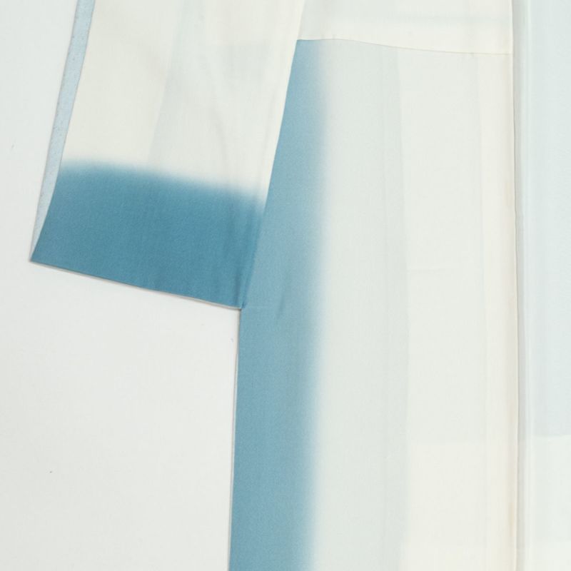 桜、菊、撫子などの可憐な草花が、優雅に裾模様から上前へと続き、やわらかな印象のグラデーション地に華やぎを添えています。