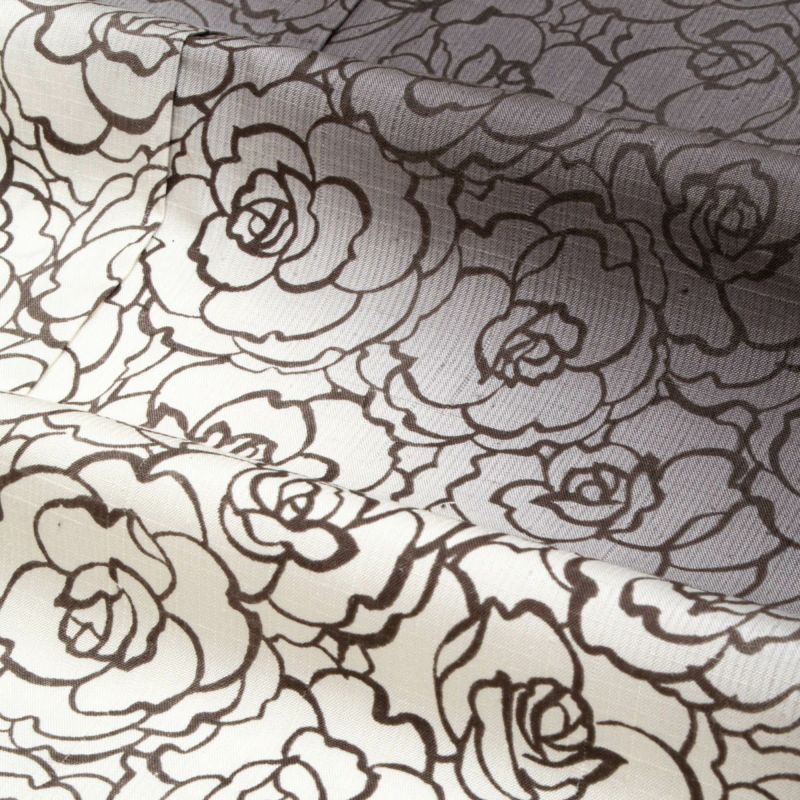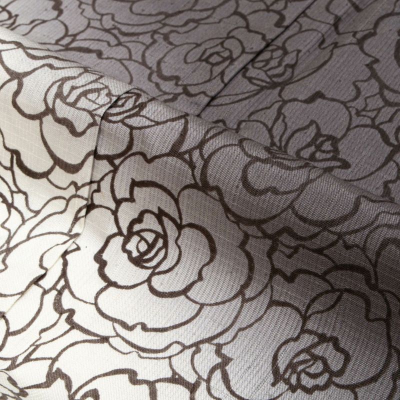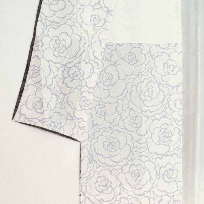 花の輪郭を繊細な線で描いた総柄の薔薇文様が、モダンな中にも気品を感じさせるデザイン。