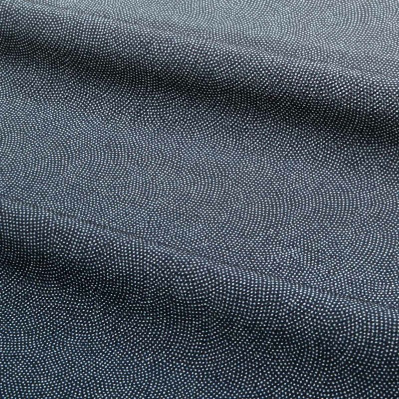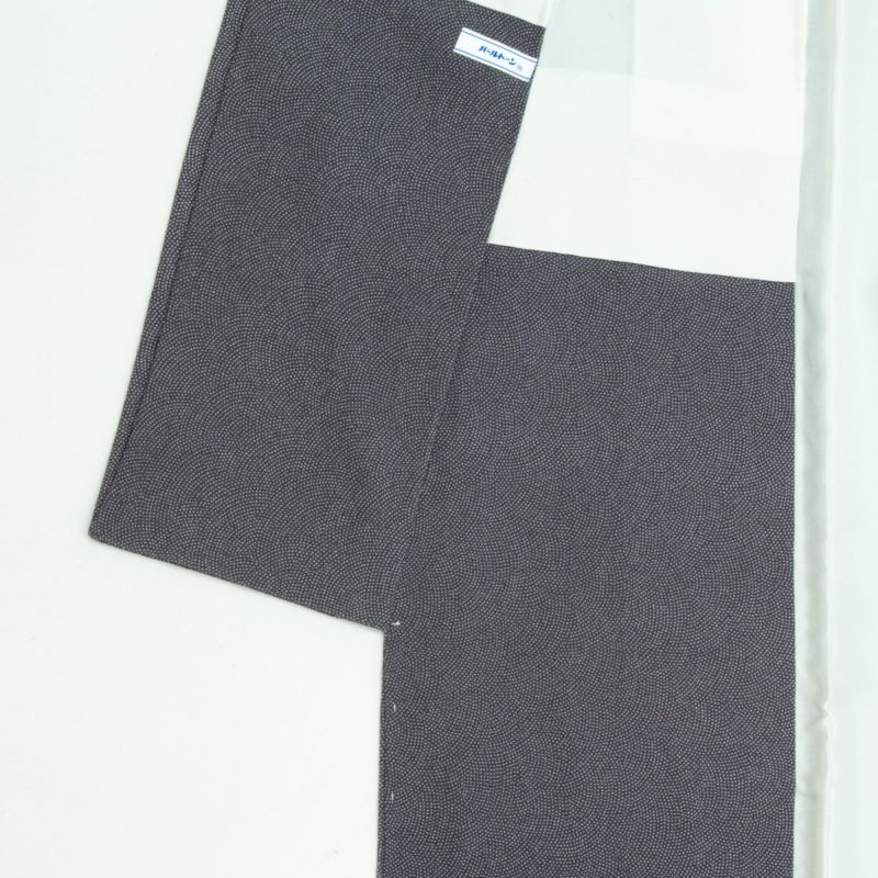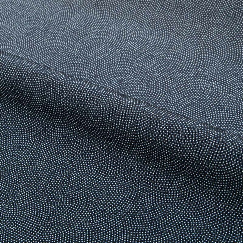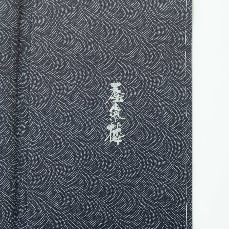 繊細な伊勢型紙によって染め出された「鮫青海(さめせいがい)」文様が、緻密に地に敷き詰められ、遠目には無地感覚にも映る、洗練された佇まい。近くで見るとその繊細さに驚かされます。