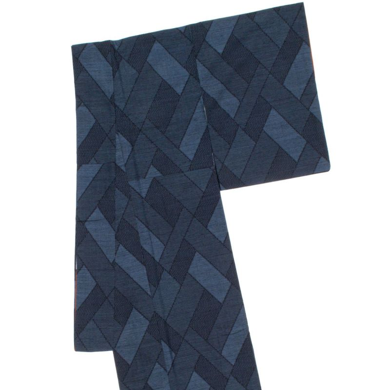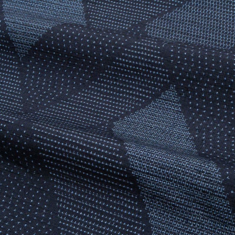 複雑に組まれた構成は視覚的にも奥行きがあり、モダンな印象を醸しつつも、伝統の絣技法がしっかりと息づいています。