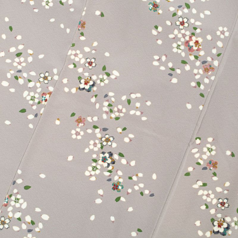 やわらかな霞色の地に、桜の花を舞わせた愛らしい小紋です。