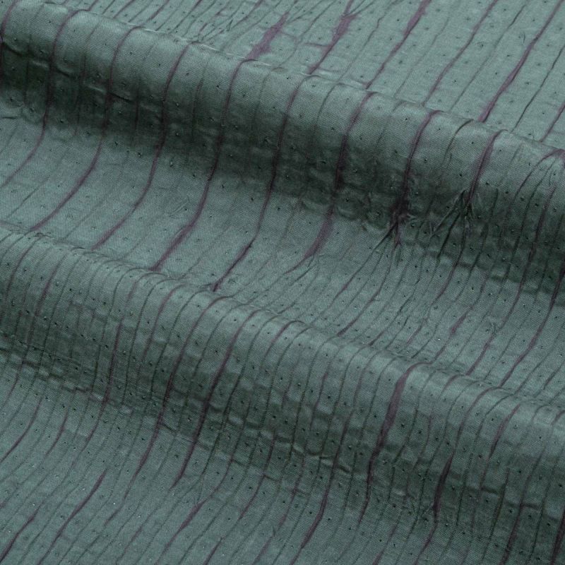 ややくすんだ青碧地にほんのり浮かぶ黒の絞りが、クラシカルかつ現代的な印象を醸し出します。
