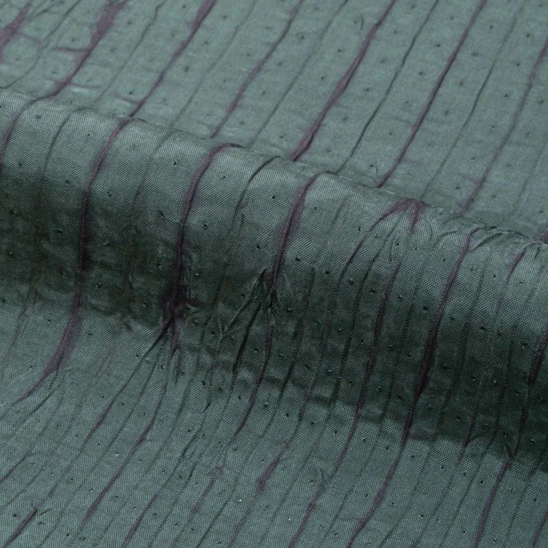 深い青碧(せいへき)色に黒の絞りが縦に流れる、モダンな趣のある総絞りの紬です。