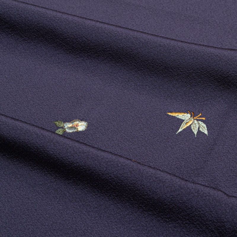 落ち着いた地色が刺繍の彩りを引き立て、静かに気品を放ちます。