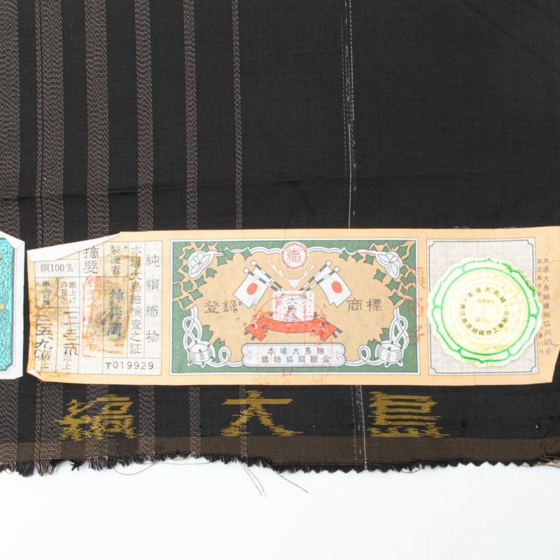 【美品】本場大島紬 泥染 縞大島 神楽岡錻斉 モダン縞柄 証紙付き 正絹 袷です。