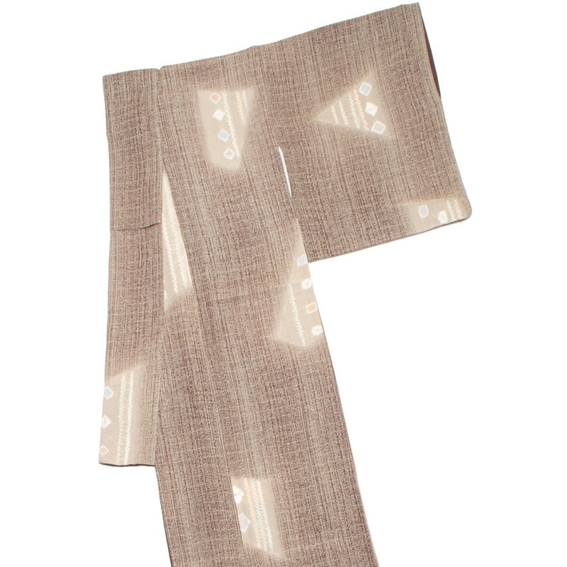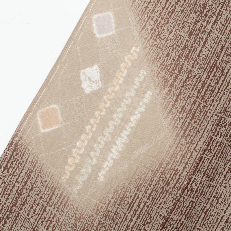 【千總】特選 小紋 友禅 絞り 暈し モダン抽象柄 紅檜皮 ベージュ 正絹 袷 美品です。