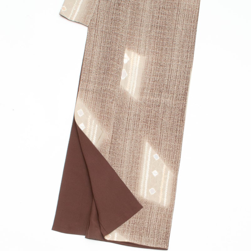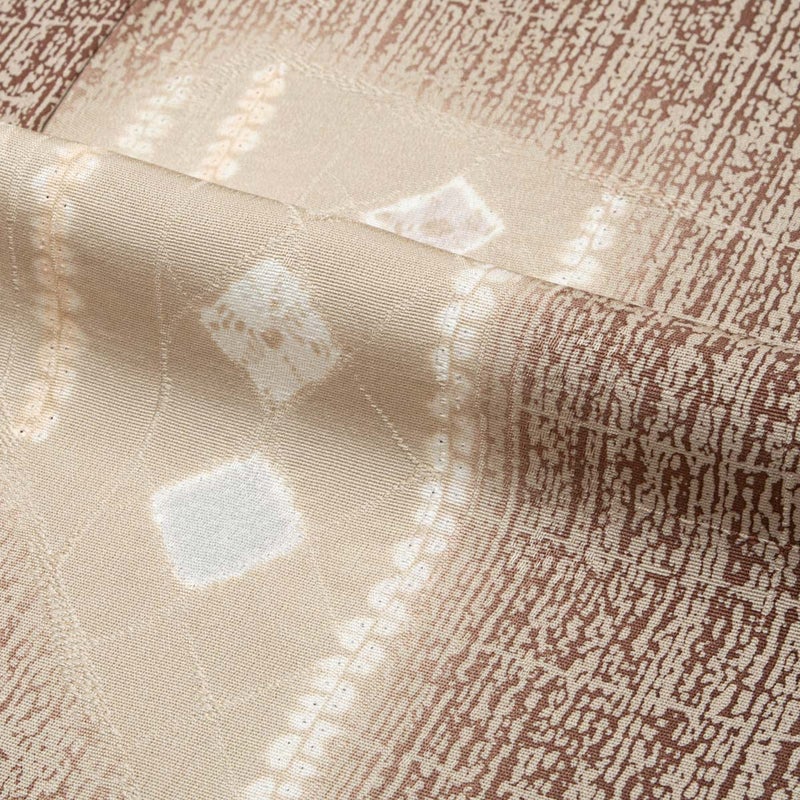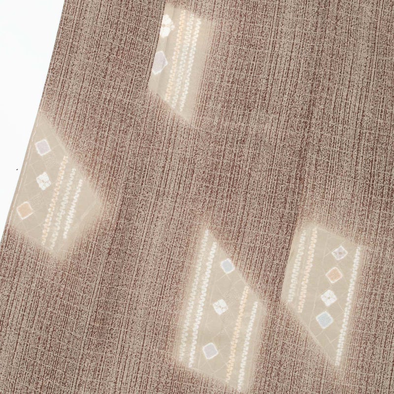 紅檜皮色とベージュのやわらかな地色に、友禅と絞り、暈しを組み合わせたモダンな抽象柄が美しい【千總】の特選小紋です。
