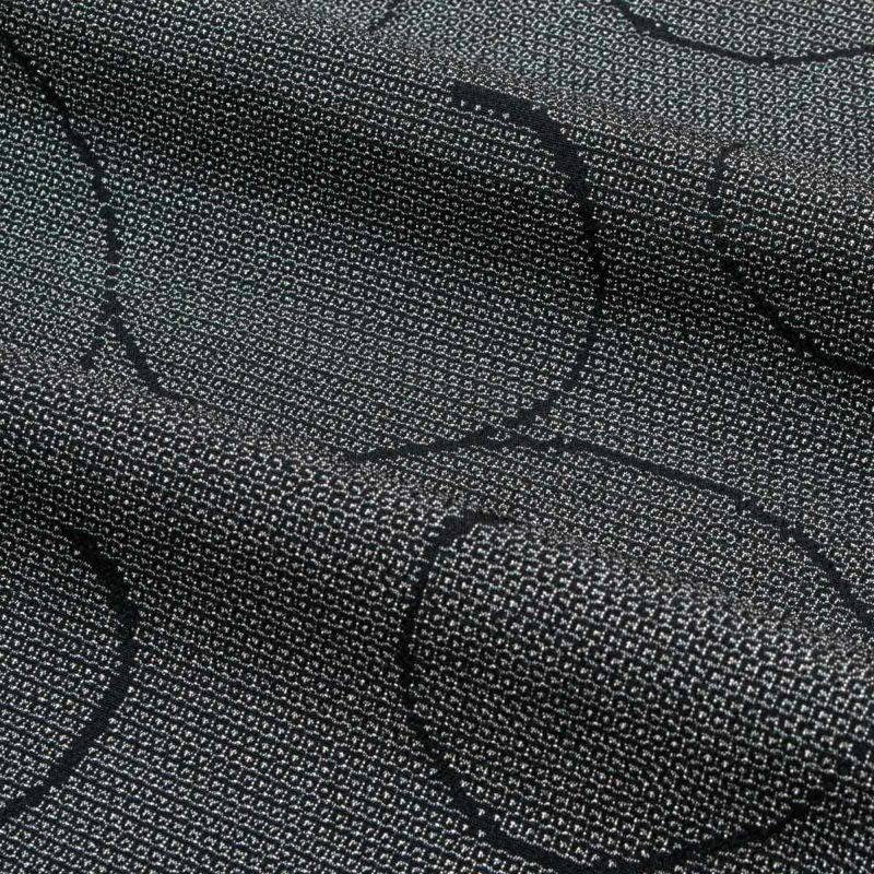 色味は黒を基調に、光の加減で絣の白糸が繊細にきらめき、奥行きを感じさせる仕上がりです。