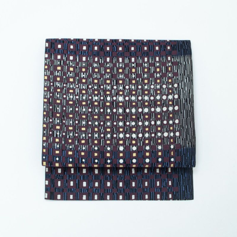 整然と並ぶ格子柄と、丸・四角・線といった抽象的な意匠が、伝統技術と現代感覚を見事に融合。