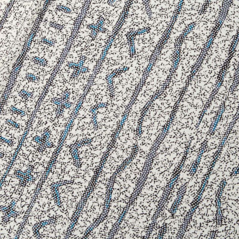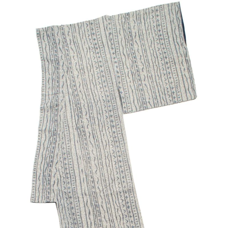 波打つような曲線と抽象的な直線が、幾何的かつ自由なリズムを生み、伝統的な型染めながらも現代的なセンスを感じさせます。