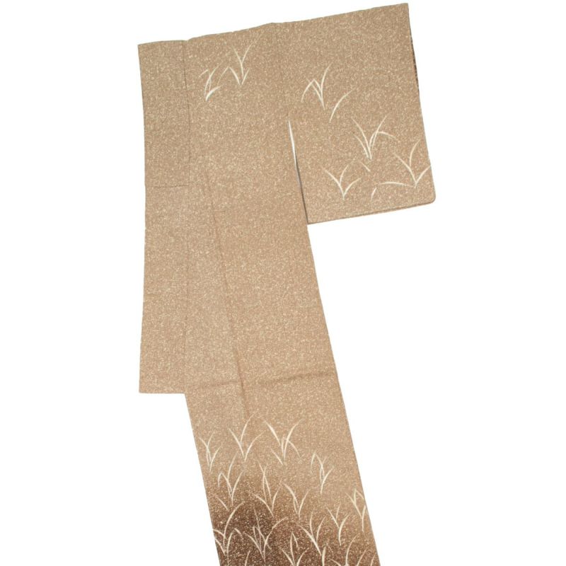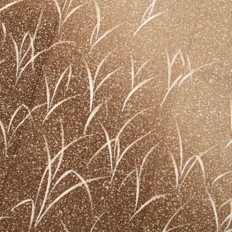 【未使用品】付下げ たたき染め 臈纈 ボタニカル柄 胡桃染 憲法色 正絹 袷です。