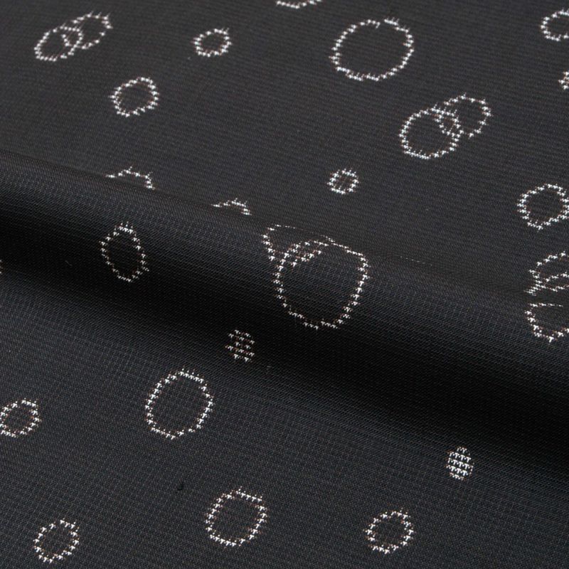 円の中の細かな絣模様や、輪郭がふわりと滲むように織り出された粒の表情が、シンプルなモチーフでありながら上質感を醸し出します。