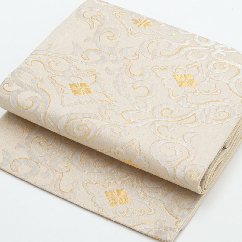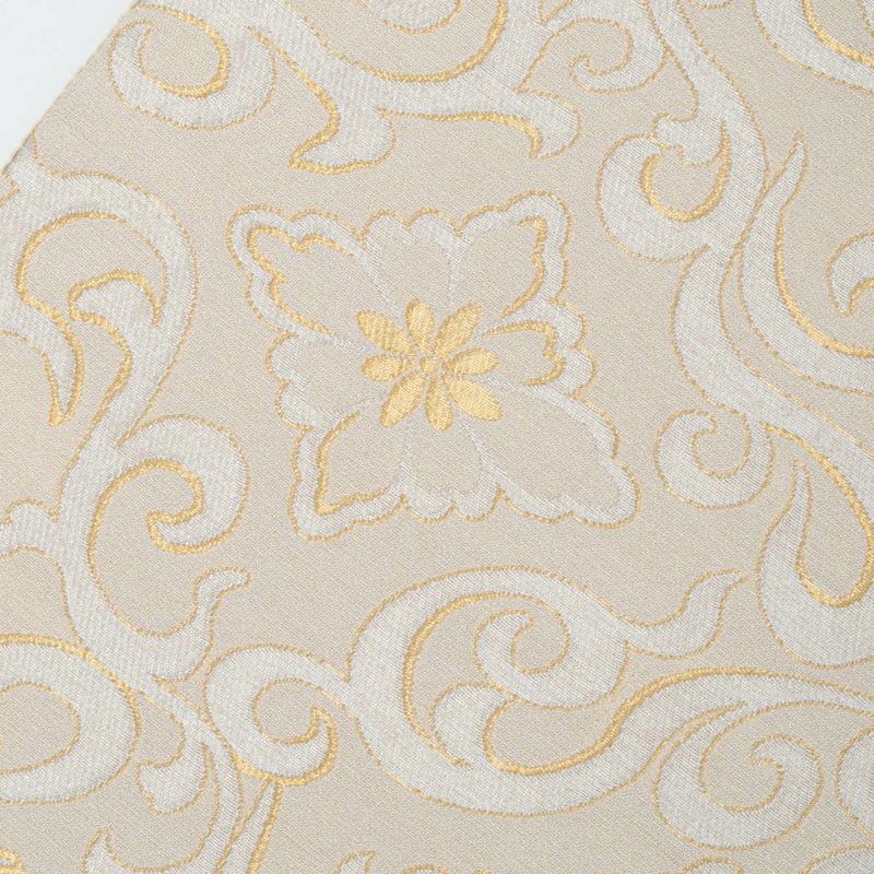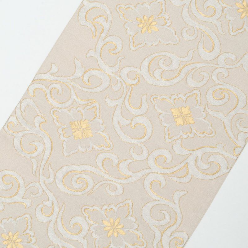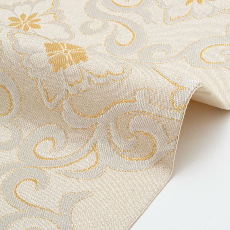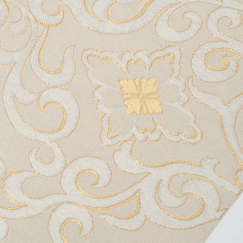 唐花唐草文が流れるように織り出され、上品なゴールドとシャンパンカラーの組み合わせが、気品あふれる印象を与えます。