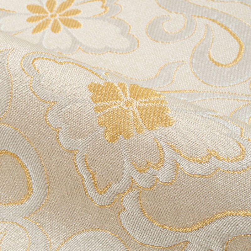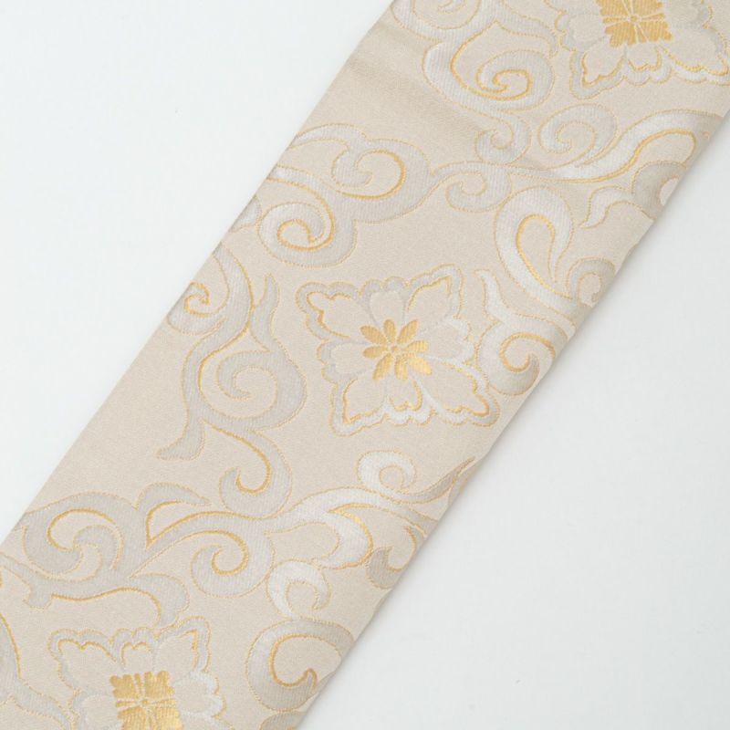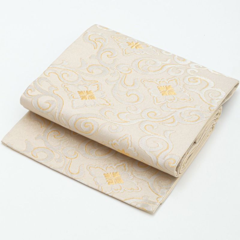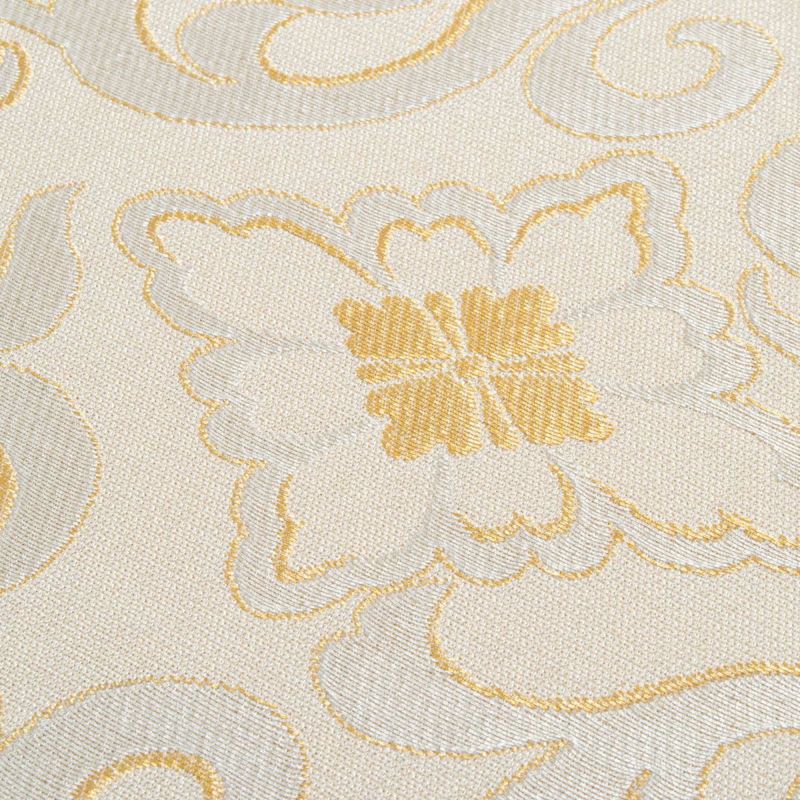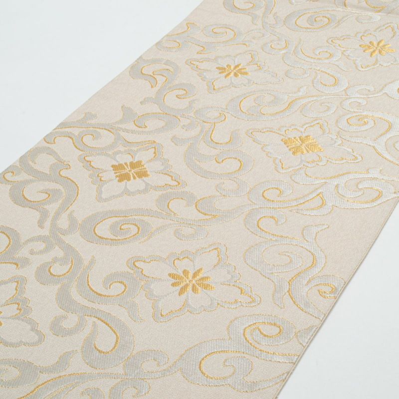 唐花唐草文が流れるように織り出され、上品なゴールドとシャンパンカラーの組み合わせが、気品あふれる印象を与えます。