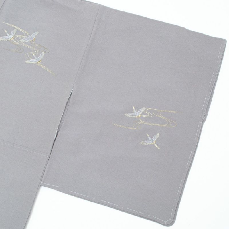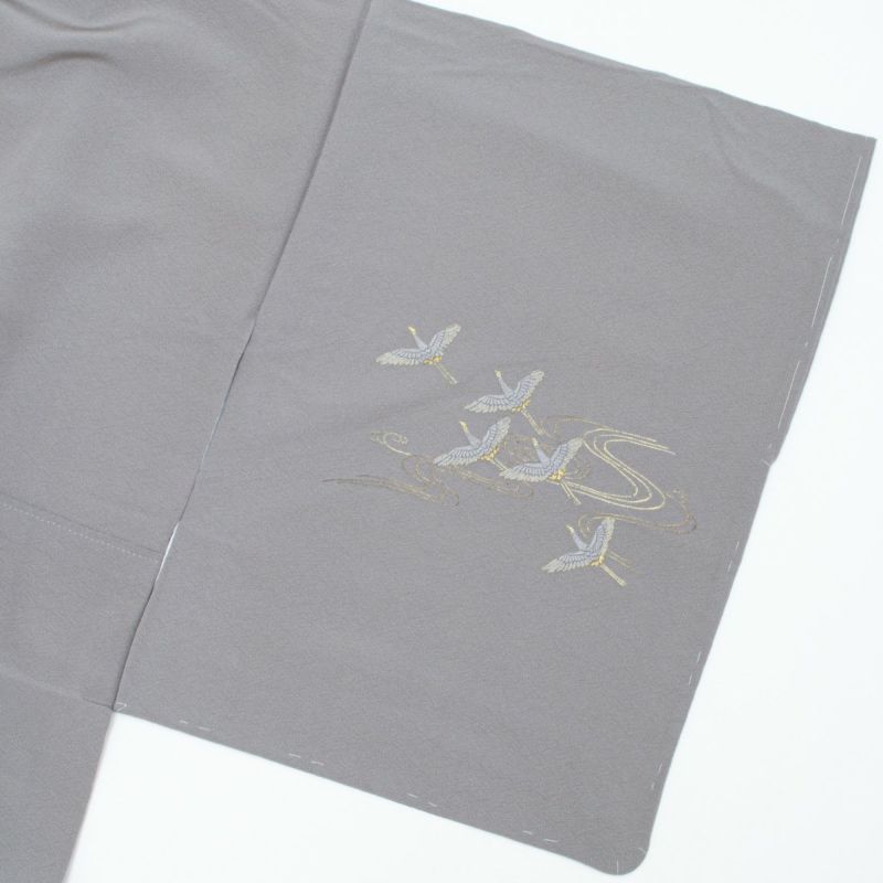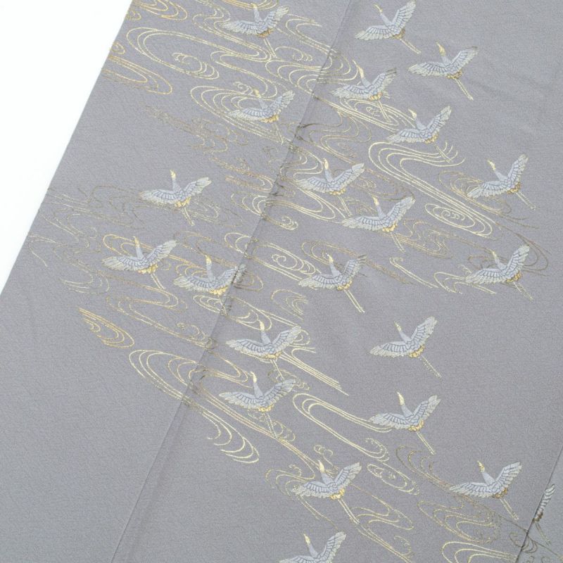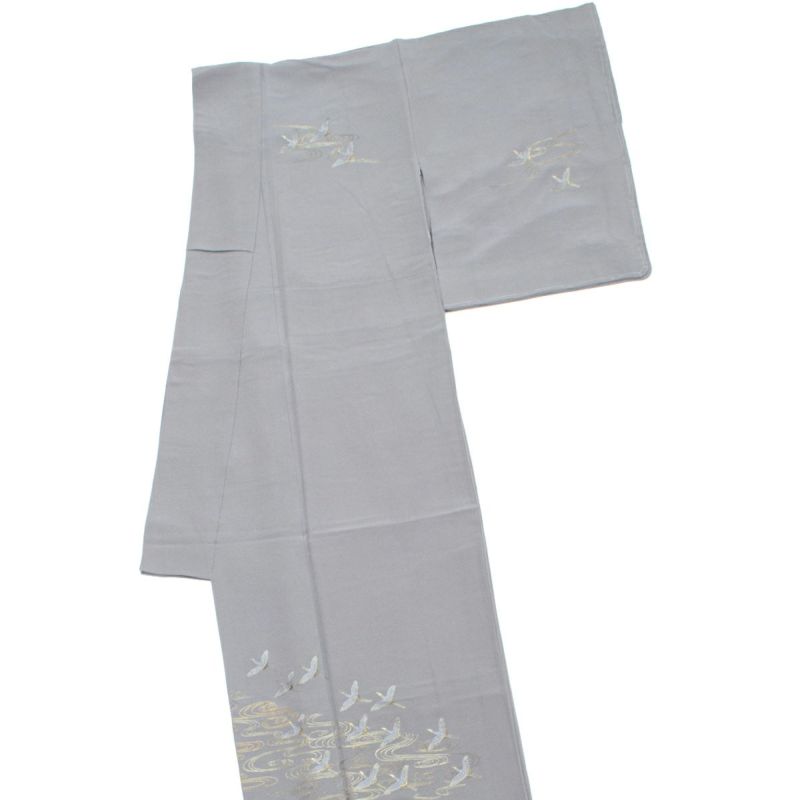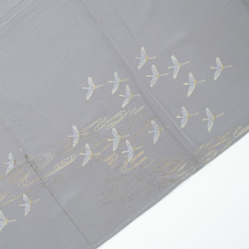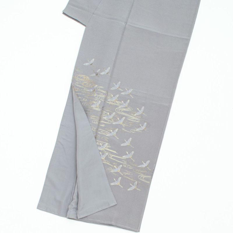 【東京ますいわ屋誂品】訪問着 刺繍 翔鶴文 グレー 美品 正絹 袷です。