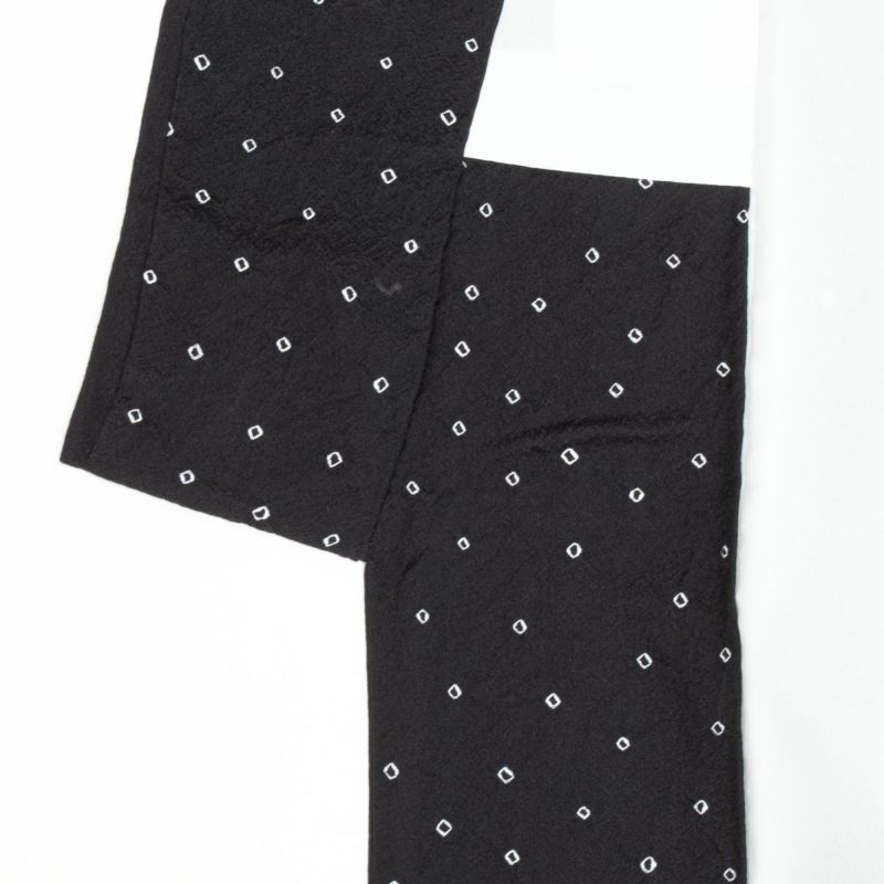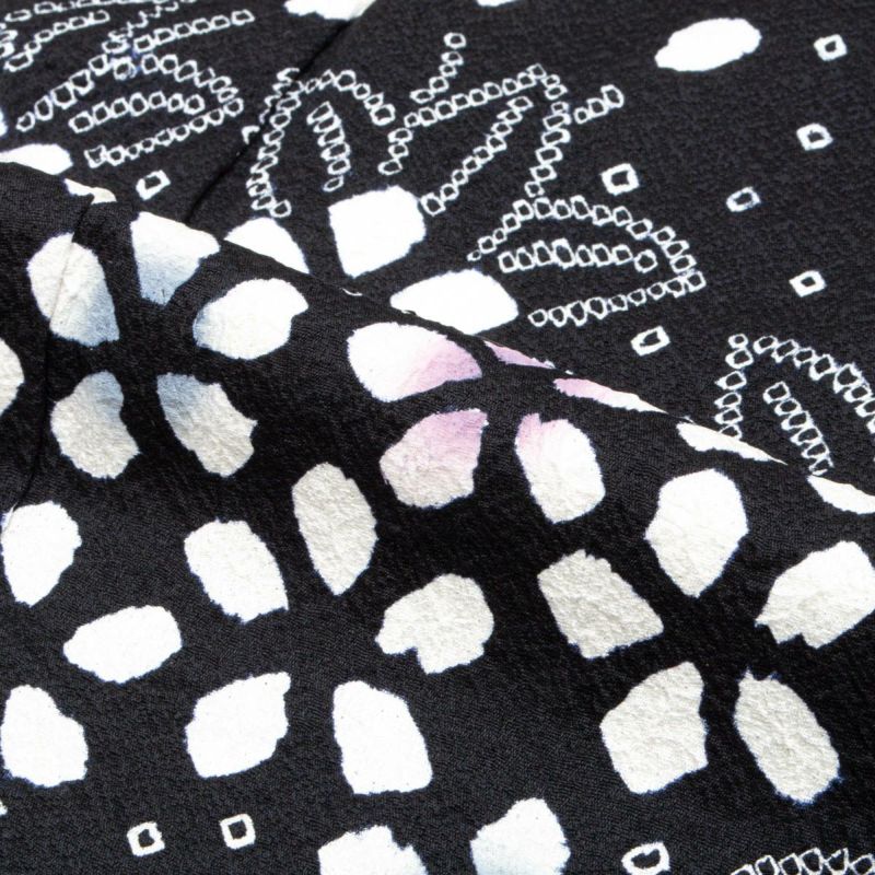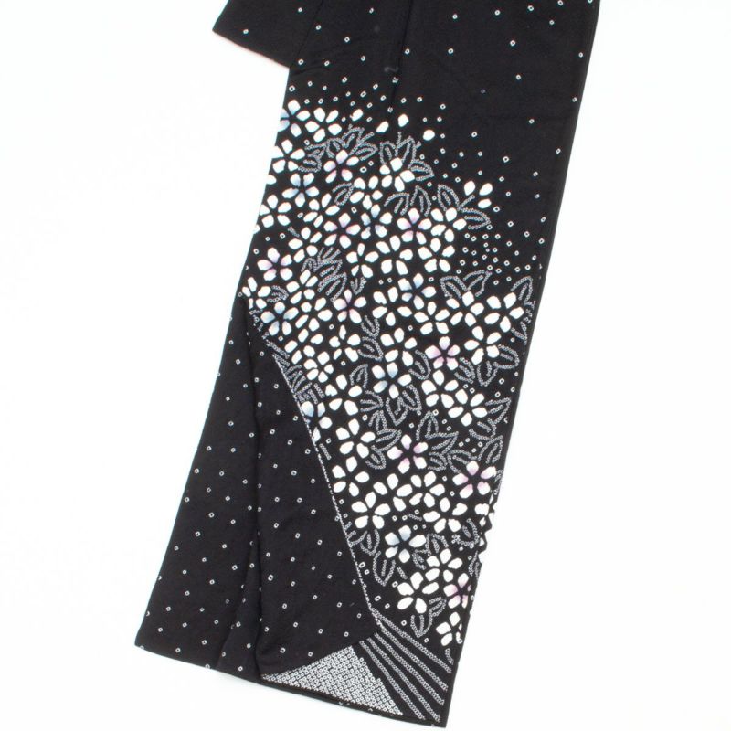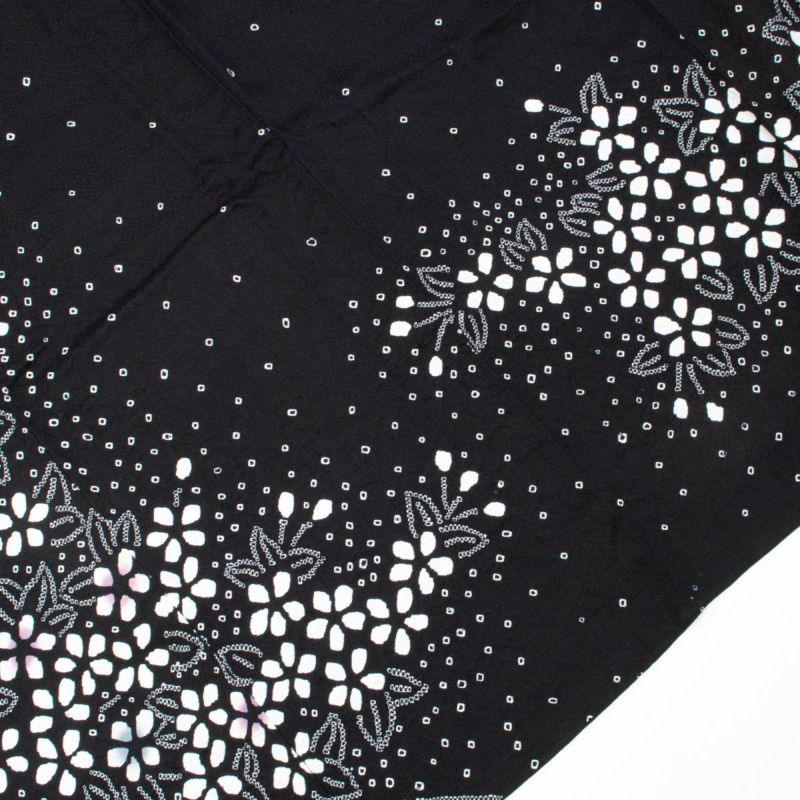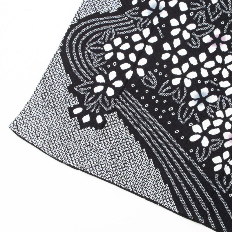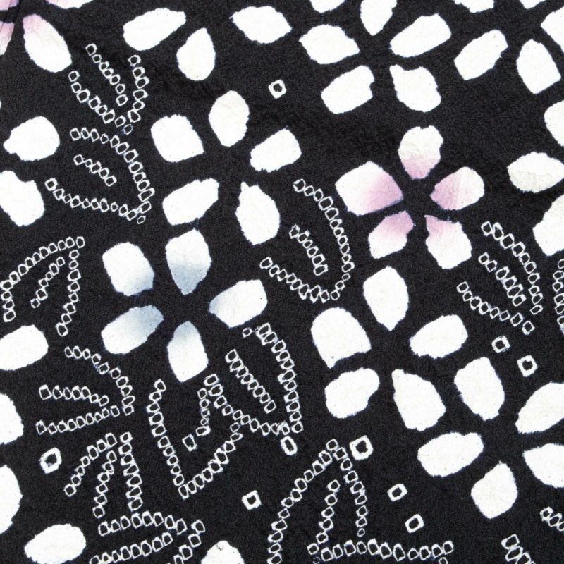 黒地に白の総絞りはフォーマルシーンで格調高く、年代を問わず着こなせる万能な一枚です。華やかさと洗練を兼ね備え、特別な日の装いを上品に引き立ててくれます。