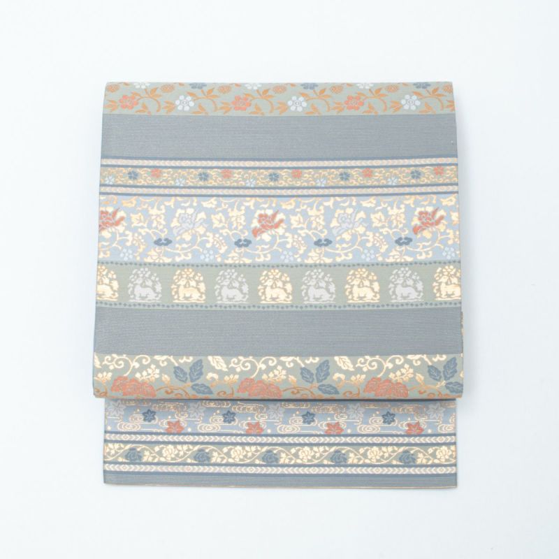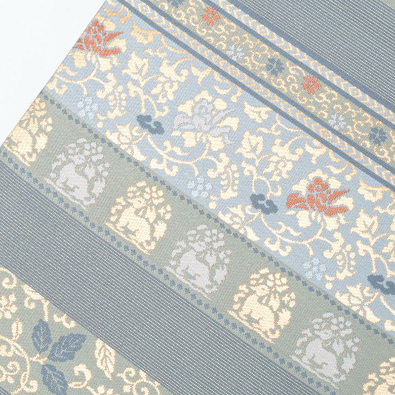 花兎や花唐草、観世水など吉祥性を帯びた意匠が品よく並び、クラシカルでありながらも軽やかな雰囲気に仕上がっています。