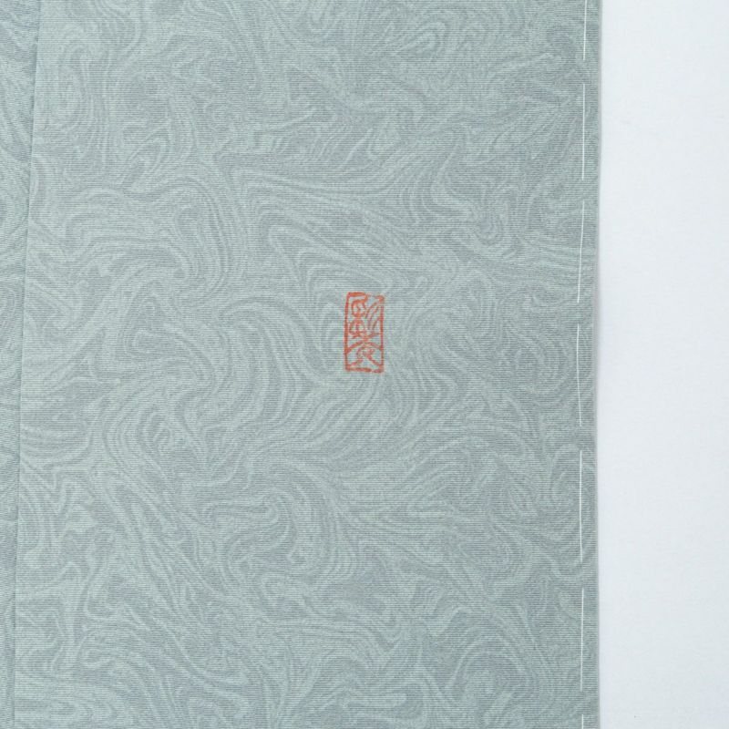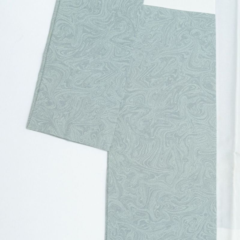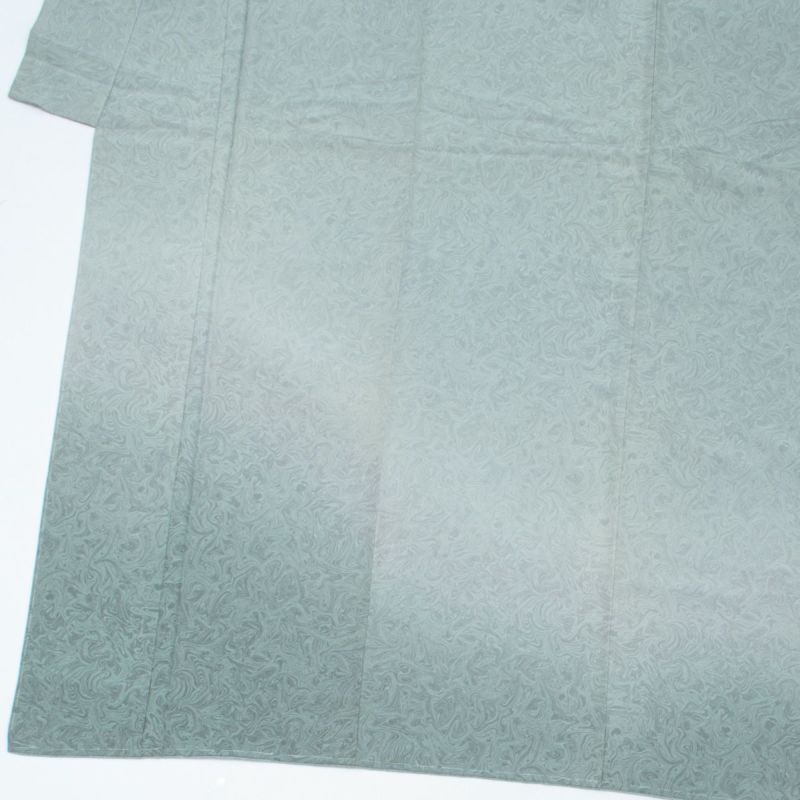 上品な青磁・青磁鼠のグラデーションが美しい、墨流し染めの付下げです。