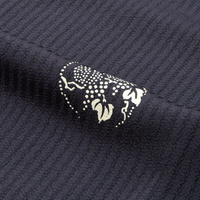 丸文のなかには、千鳥、波文、藤、菊、桜など、四季折々の文様が白一色で染め抜かれ、古典的かつ洒落た趣に仕上がっています。