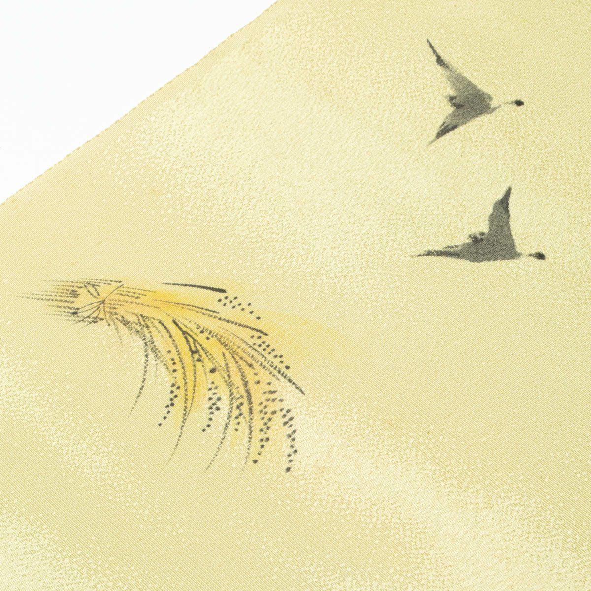 帯揚げ 粗密 梨地 紋意匠 柳鼠 手描き 雁の群れ 正絹