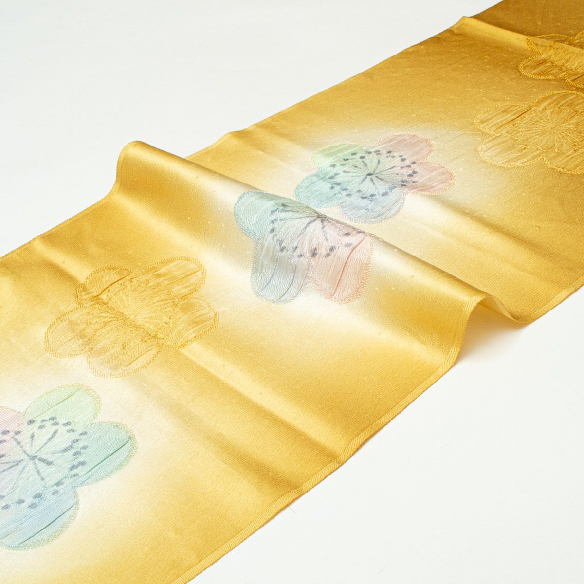 帯揚げ ふくれ織 梅花文 地紋起こし 青朽葉色 正絹