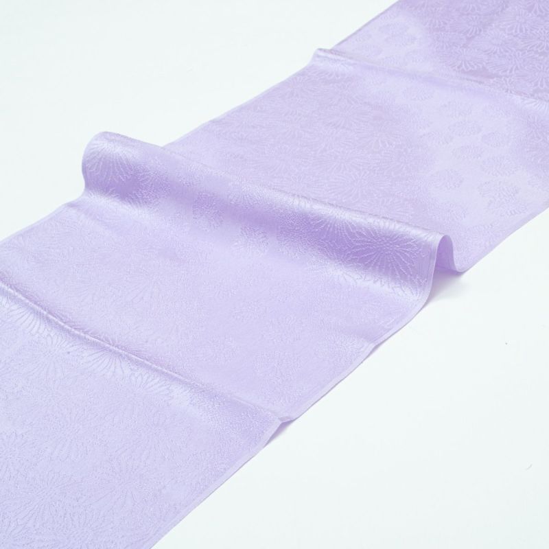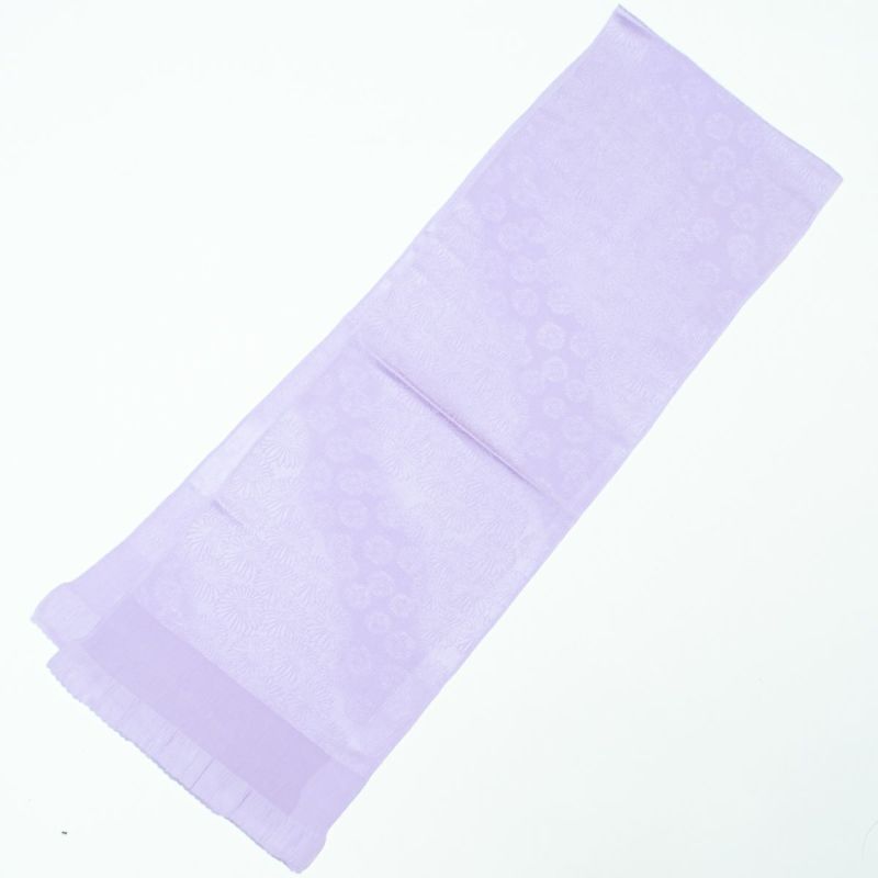 「帯揚げ 菊花文 紋意匠 藤色 無地 正絹」です。