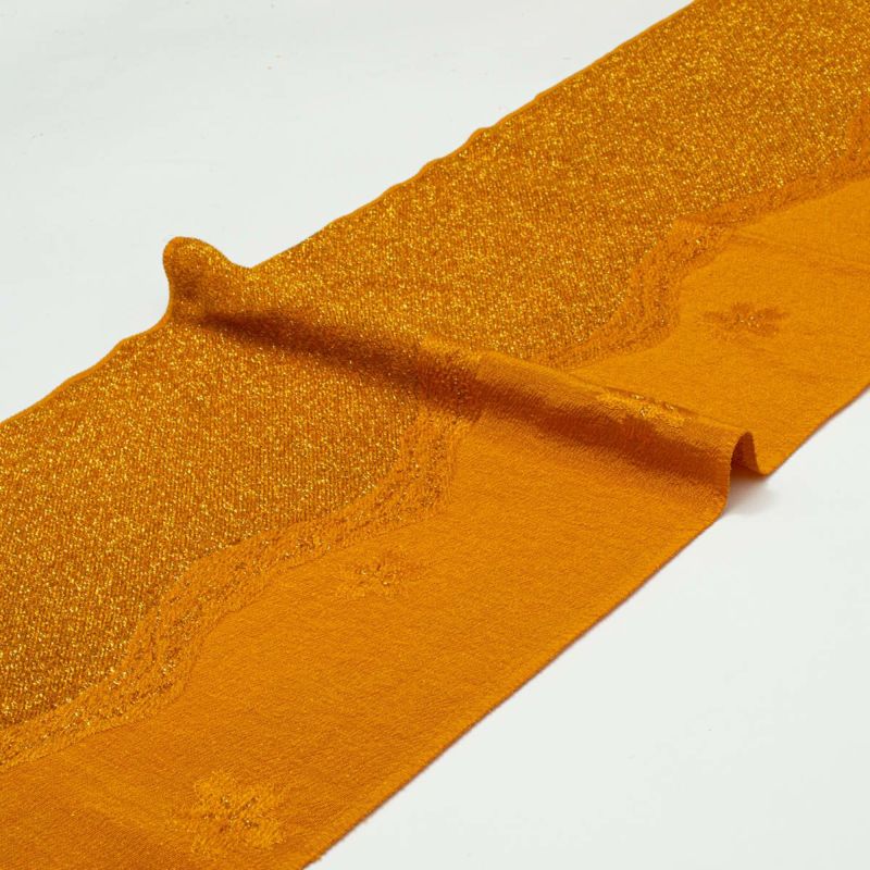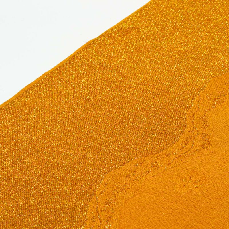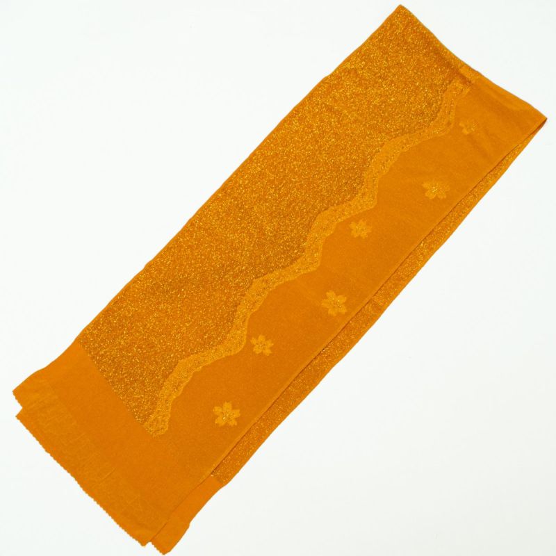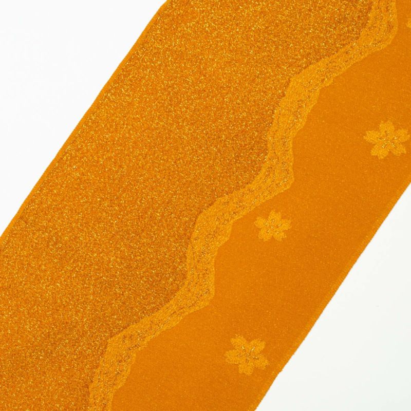 「帯揚げ 桜 よろけ縞 紋意匠 金茶 ラメ入り 無地 正絹」です。
