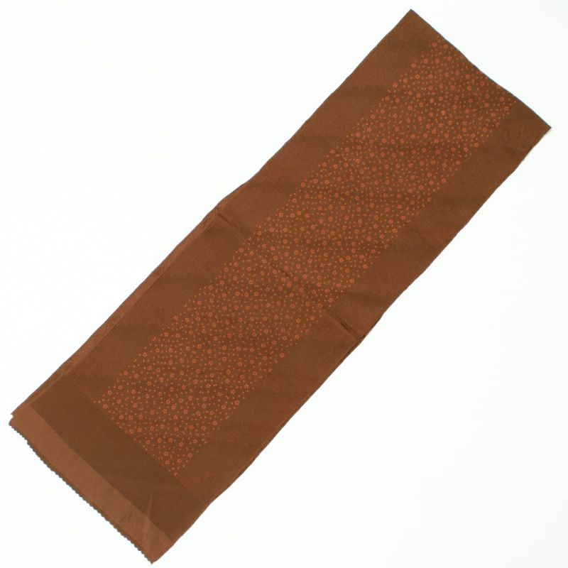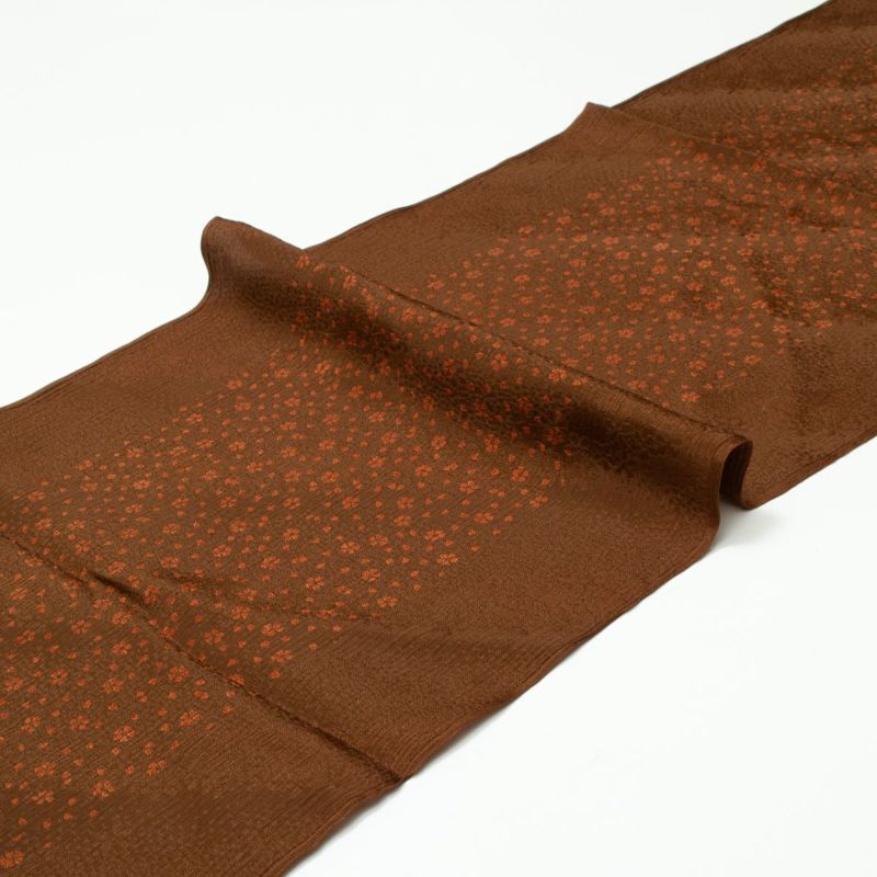 「帯揚げ 楊柳 紋意匠 友禅 小桜散らし 焦茶 正絹」です。