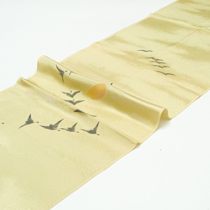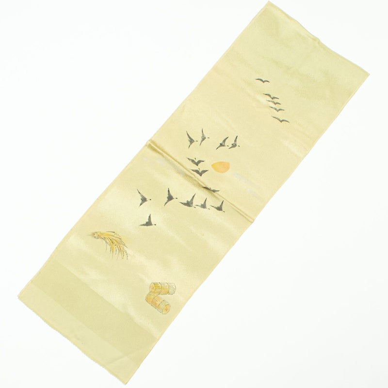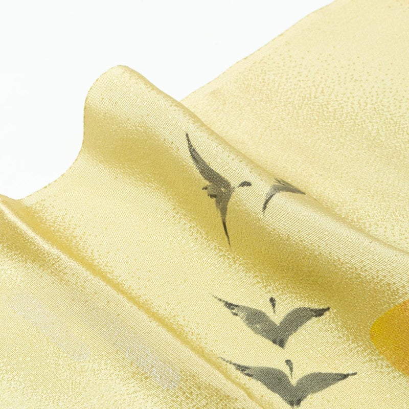 「帯揚げ 粗密 梨地 紋意匠 柳鼠 手描き 雁の群れ 正絹 」です。