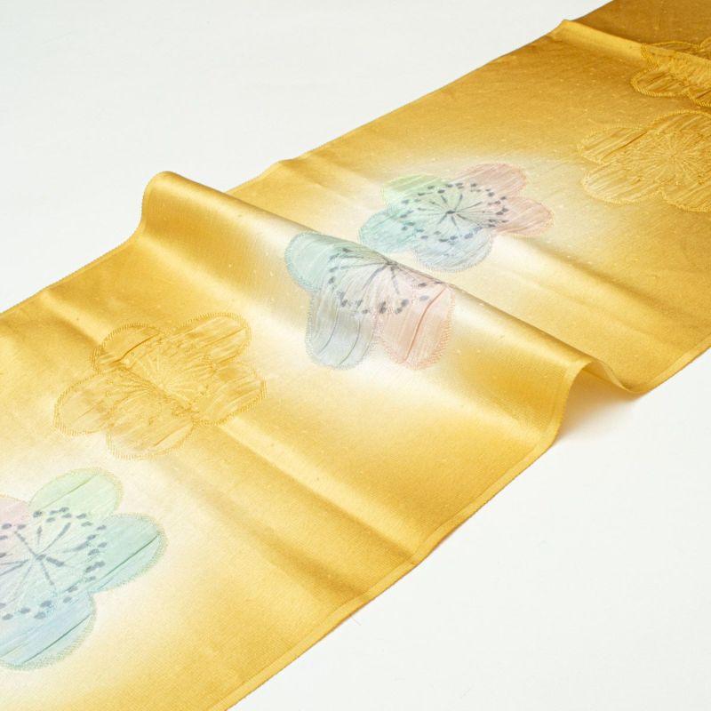 「帯揚げ ふくれ織 梅花文 地紋起こし 青朽葉色 正絹」です。