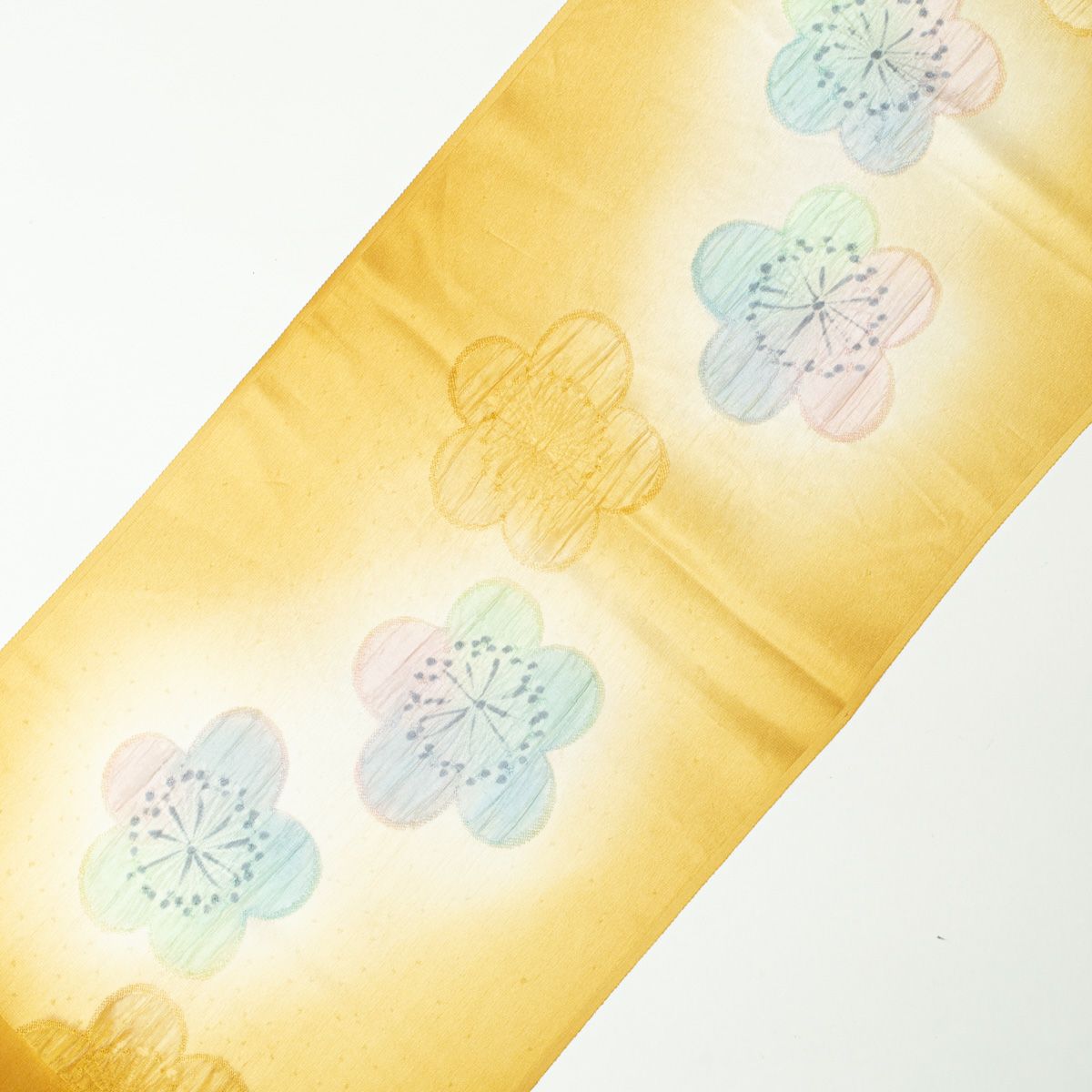 帯揚げ 桜 よろけ縞 紋意匠 金茶 ラメ入り 無地 正絹