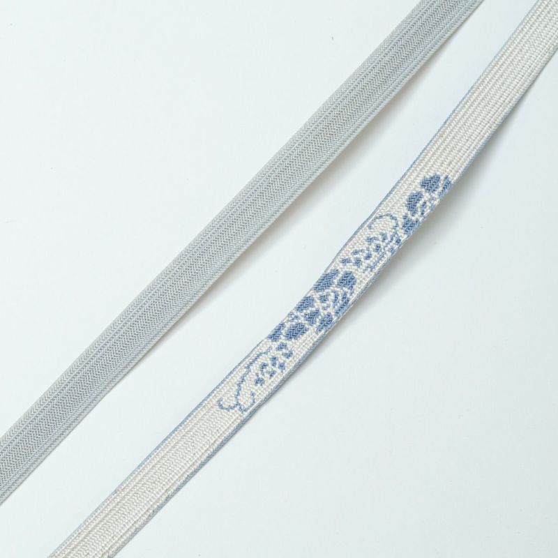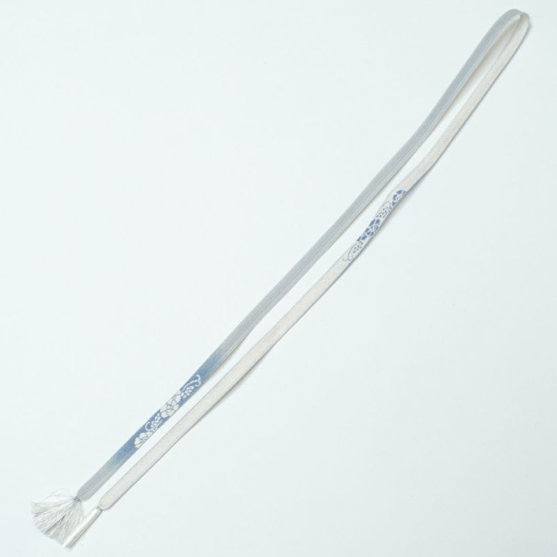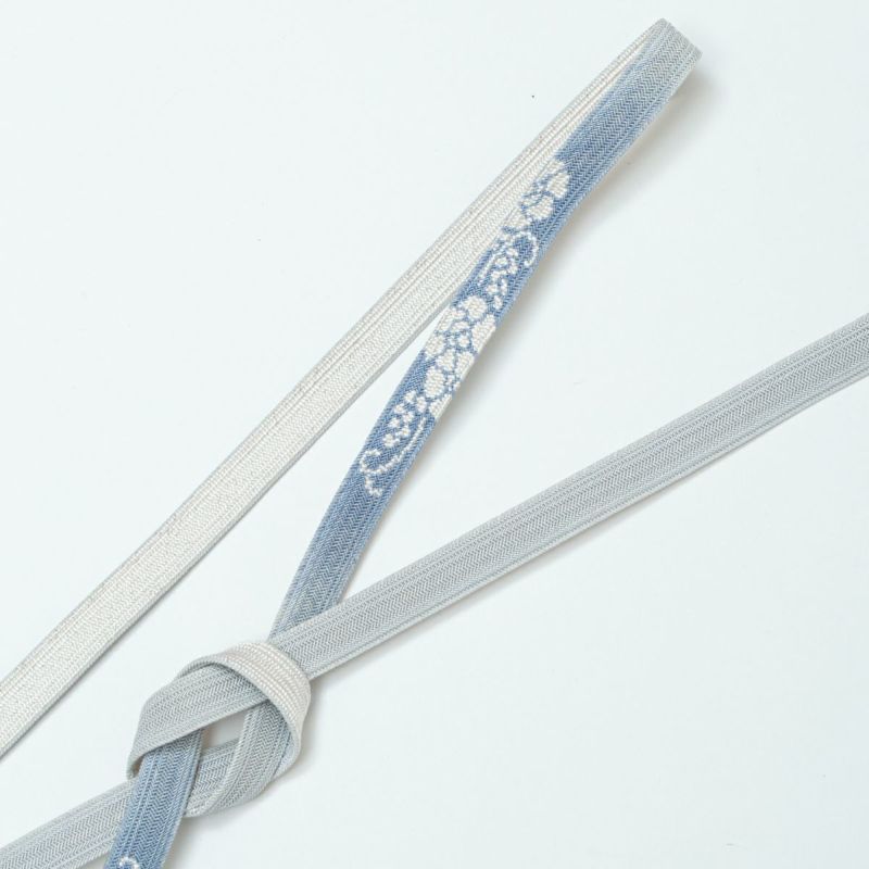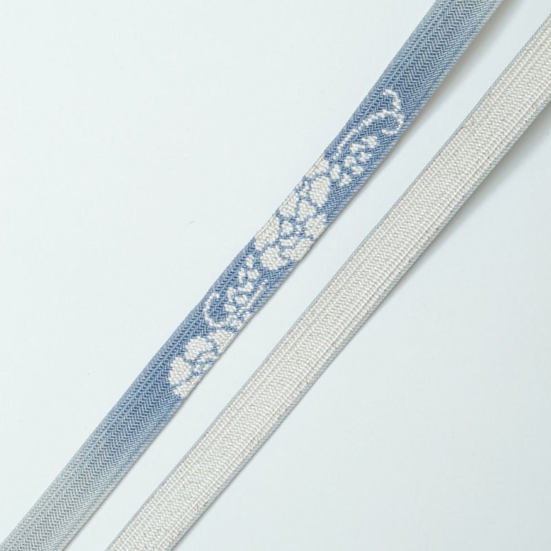 「帯締め 高麗組 植物文様 薄花色 灰青 暈し 正絹」です。