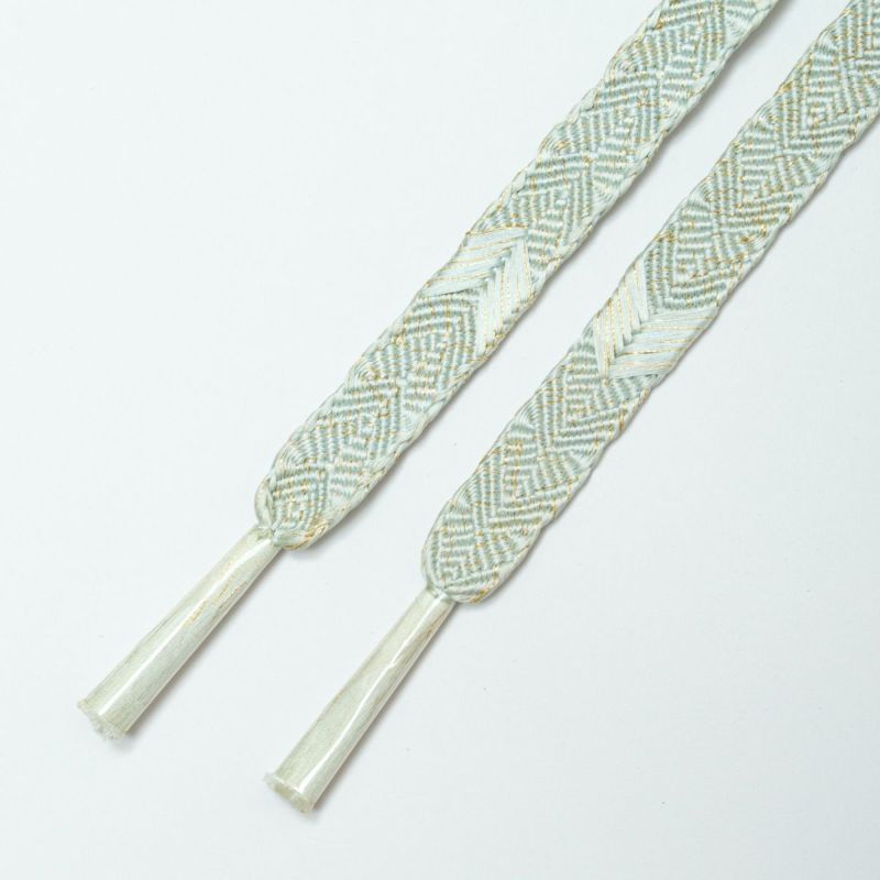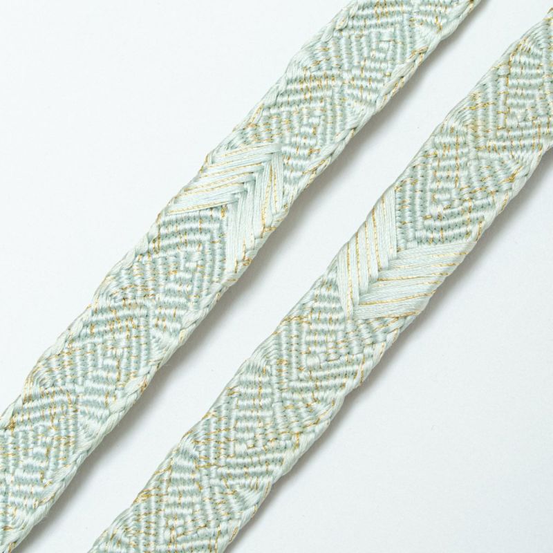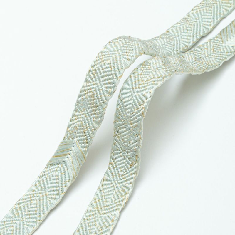 「帯締め 笹浪組 矢羽文 青磁鼠 金糸入り 正絹」です。