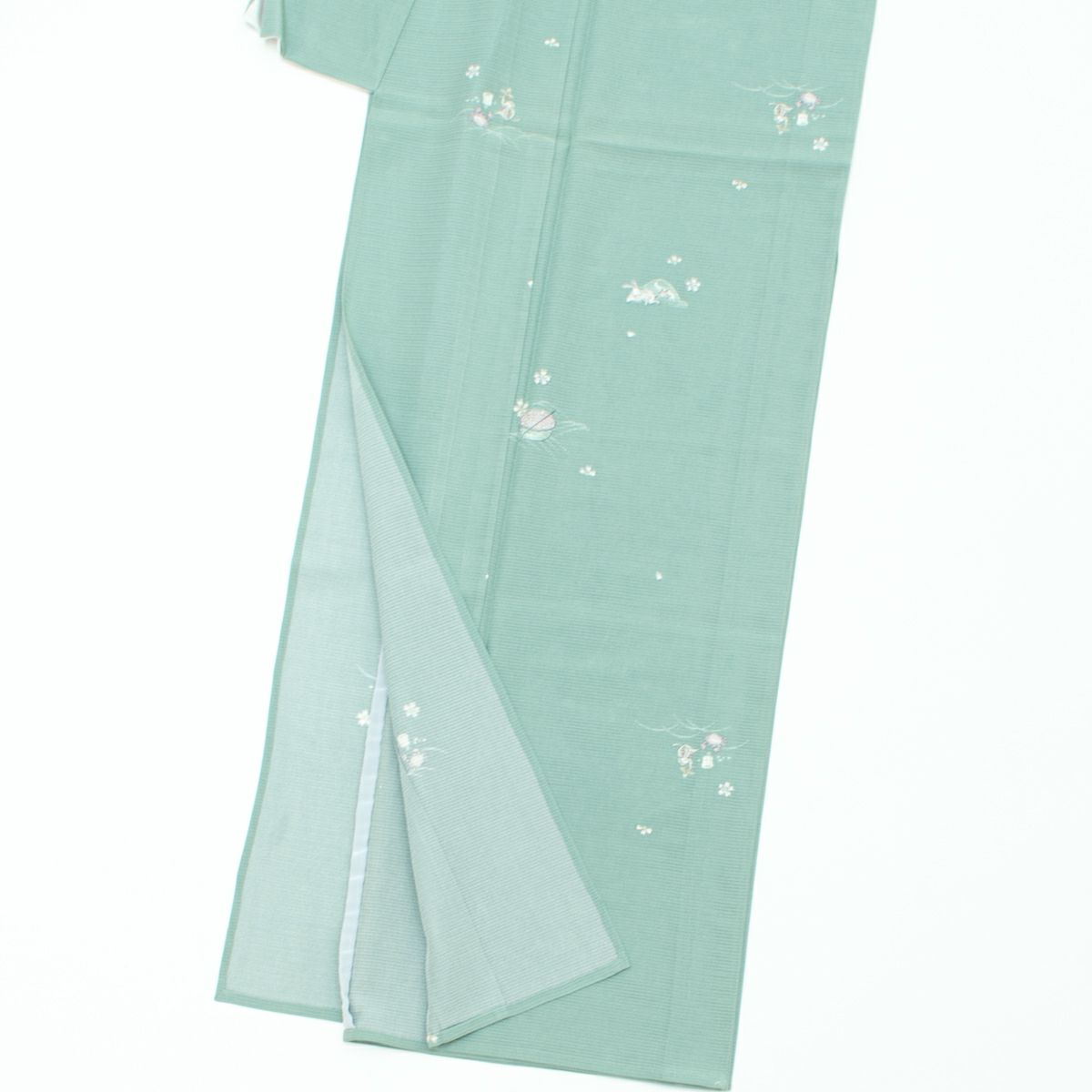 他の画像を見る 【単衣】飛び柄小紋 絽 童話柄 うさぎとかめ 一寸法師 さるかに合戦 青磁 正絹 身丈:約153cm 裄:約65.5cm 当店特別価格 ¥ 8,800 税込 カートに入れる お気に入りに登録する